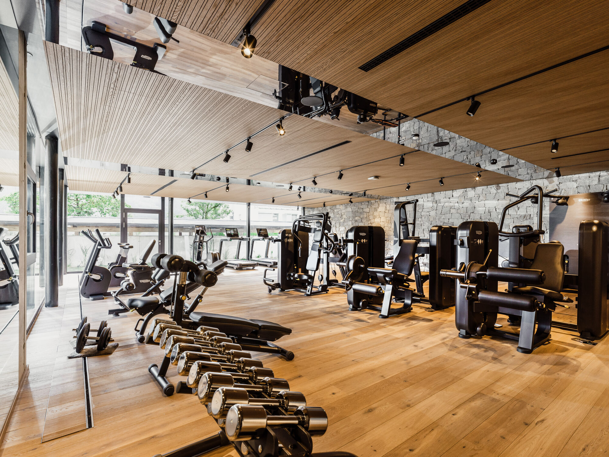 Fitness room (150 m²): latest high-tech cardio equipment from Technogym