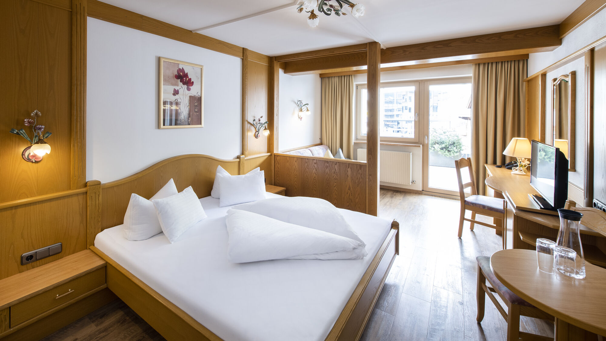 Our 20 rooms range from cozy double rooms in various categories, to deluxe rooms and suites. We also offer two fully equipped apartments for up to 5 people. All rooms and apartments are decorated in a bright and modern Tyrolean style and there is free WiFi available throughout the hotel. In the event that we do not have rooms available to offer, just ask for vacancies in our apartment house Regina next to our hotel.