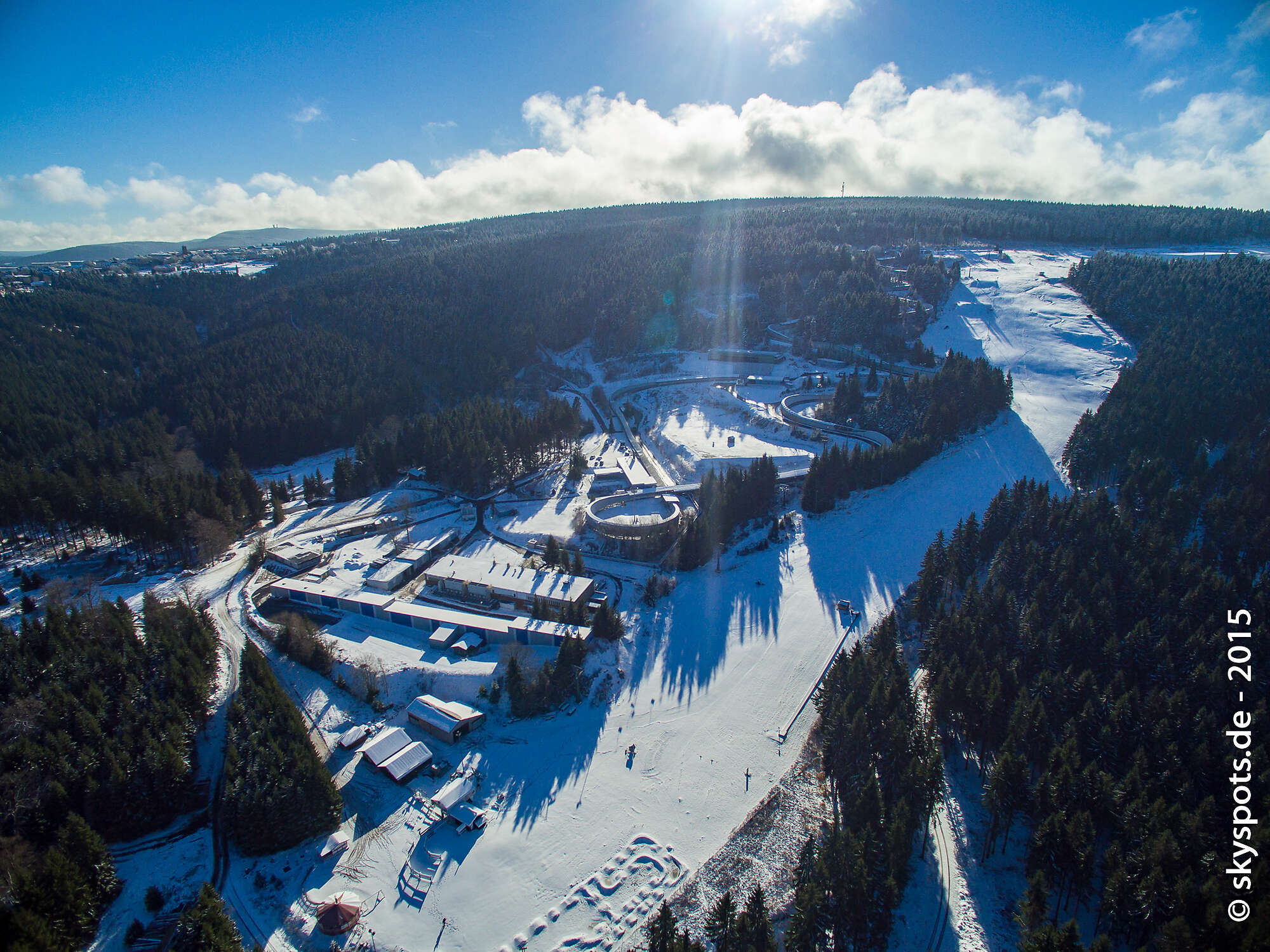 The chairlift then takes you comfortably back to the top and takes you over the LOTTO Thüringen EISARENA Oberhof.