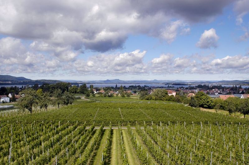 At Hochwart, the highest point on the island, you not only have a great panoramic view of Untersee, the Hegau volcanoes, and the Swiss lake shore. On some days, the craftswoman serves coffee and cake on the green meadow under cherry trees here. Pure idyll.