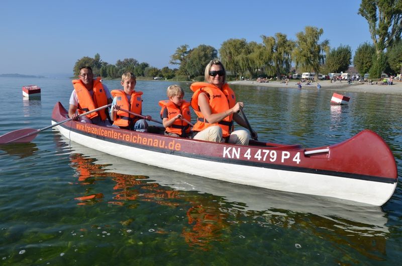 Then we cycle back on Niederzeller Straße, keeping straight for a long time, ignoring all side streets until we can follow a sign to the campsite on the right (there Niederzeller Straße is called "Zum Sandseele"). Here we shouldn't miss going for a swim in Lake Constance. In the evening, at sunset, the view of Hegau and Untersee is fantastic.