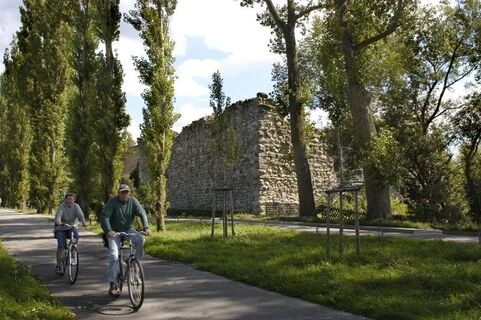 Past Hochwart, we keep right, turn left into Obere Rheinstraße. In the right-hand curve, we can still follow the island shore straight ahead (In der Abtswiese and Im Streichen) until we reach the cycle path over the island dam to the mainland again.