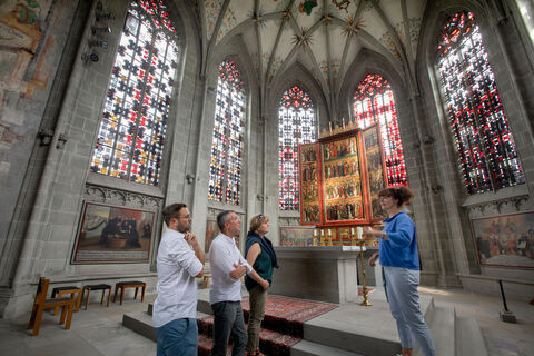 Das Jubiläum "1300 Jahre Reichenau" wurde unter dem Motto "Wir knüpfen ein Band" groß gefeiert. Nicht nur auf der Insel Reichenau und dem Reichenauer Festland konnte das 1300-jährige Jubiläum erlebt werden. Auch im Archäologischen Landesmuseum in Konstanz fand zu diesem Anlass die große Landesausstellung „Welterbe des Mittelalters“ statt, in der fünf der kostbarsten Prachthandschriften aus dem Reichenauer Skriptorium erstmals gemeinsam gezeigt wurden. Die Ausstellung ist nun vorbei, doch auf der Reichenau gibt es weiterhin viel zu entdecken - ein Besuch lohnt sich.