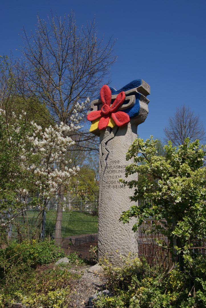 Internationale Künstler haben die Idee „Grenzen und Verbindungen“ in 15 modernen Kunstwerken aus Holz, Stein und Eisen dargestellt. Initiator der Idee war der Rielasinger Künstler Marcus Schwarz anlässlich der 25-jährigen Partnerschaft mit Nogent-sur-Seine in Frankreich.