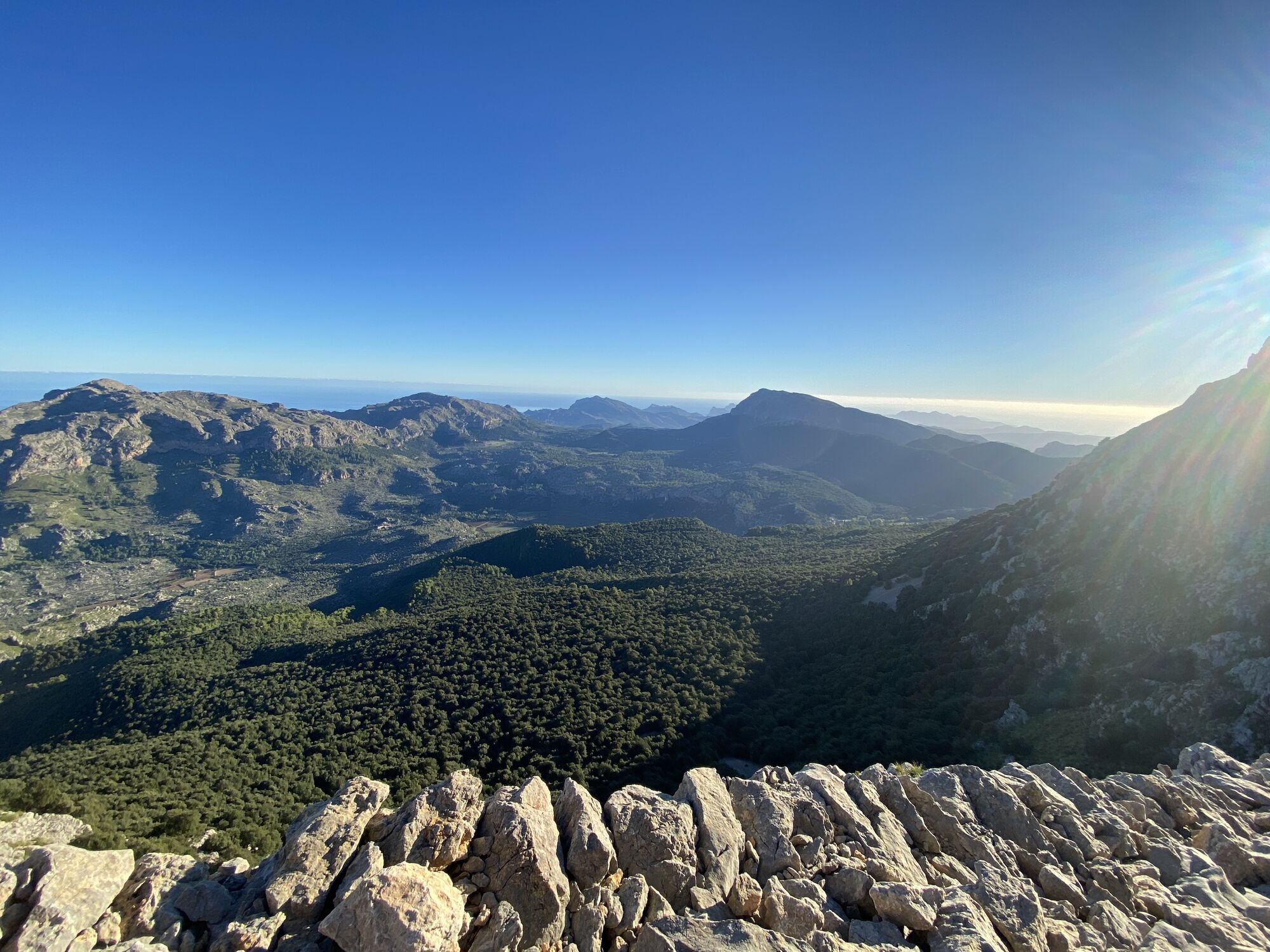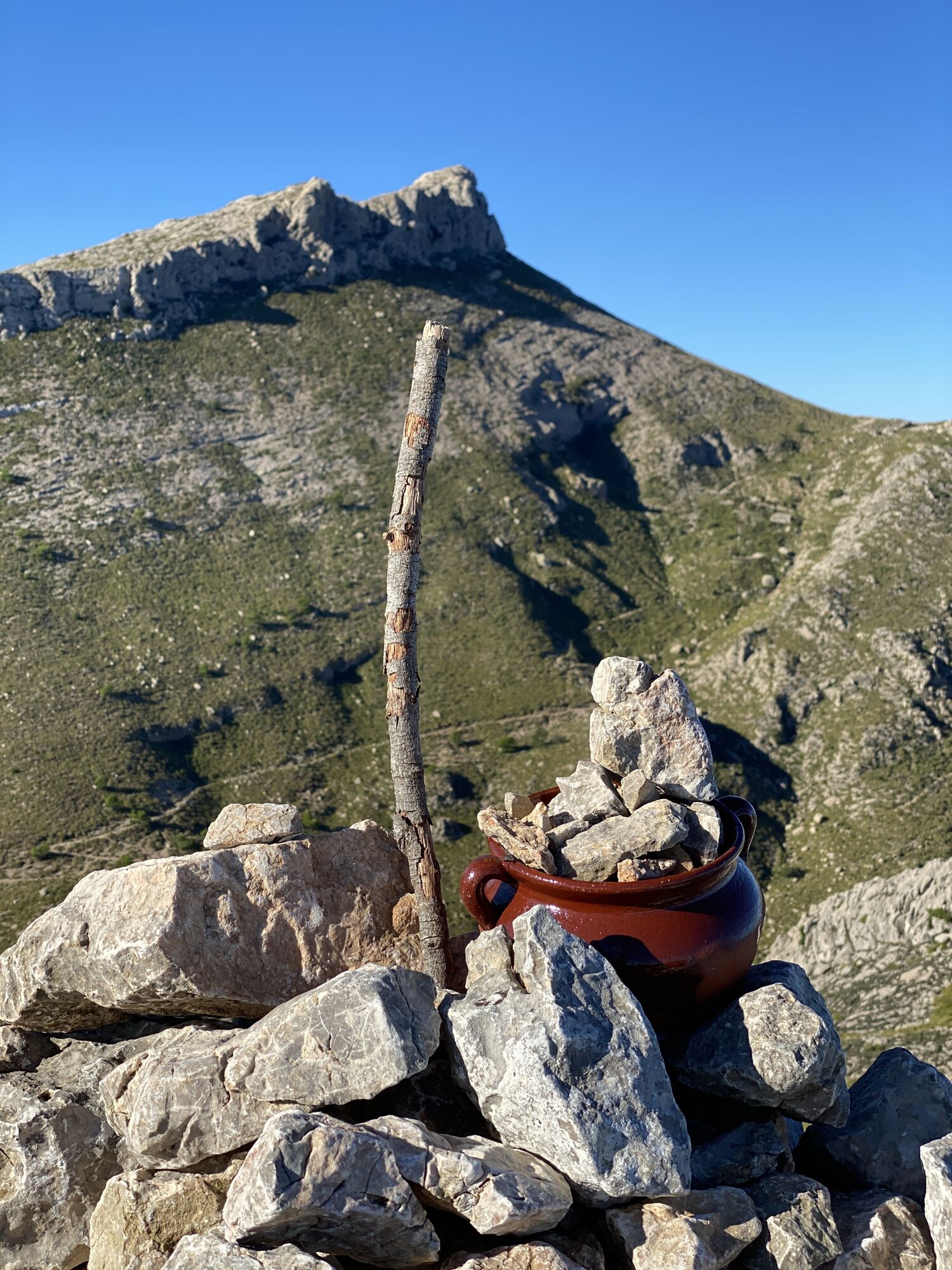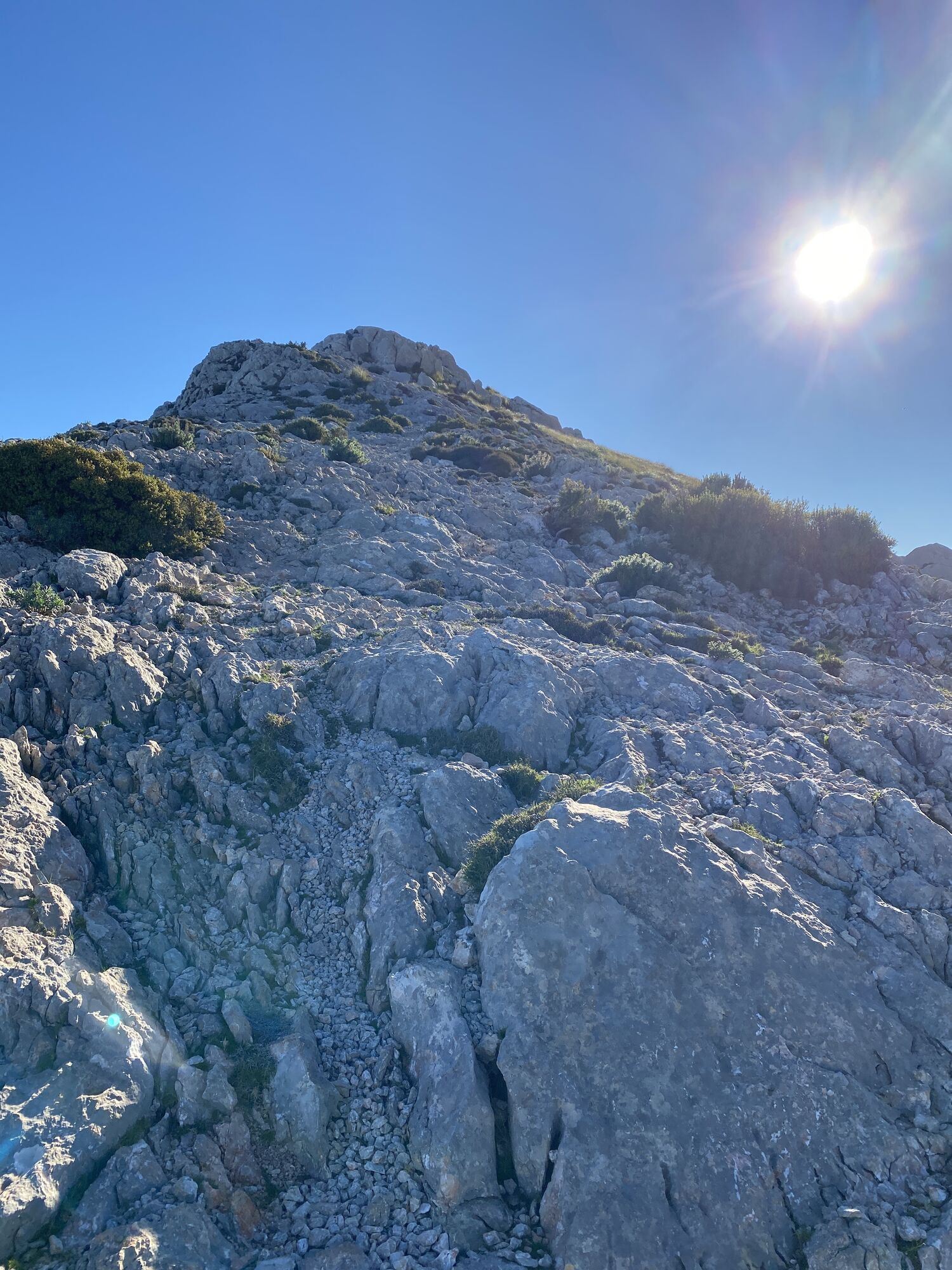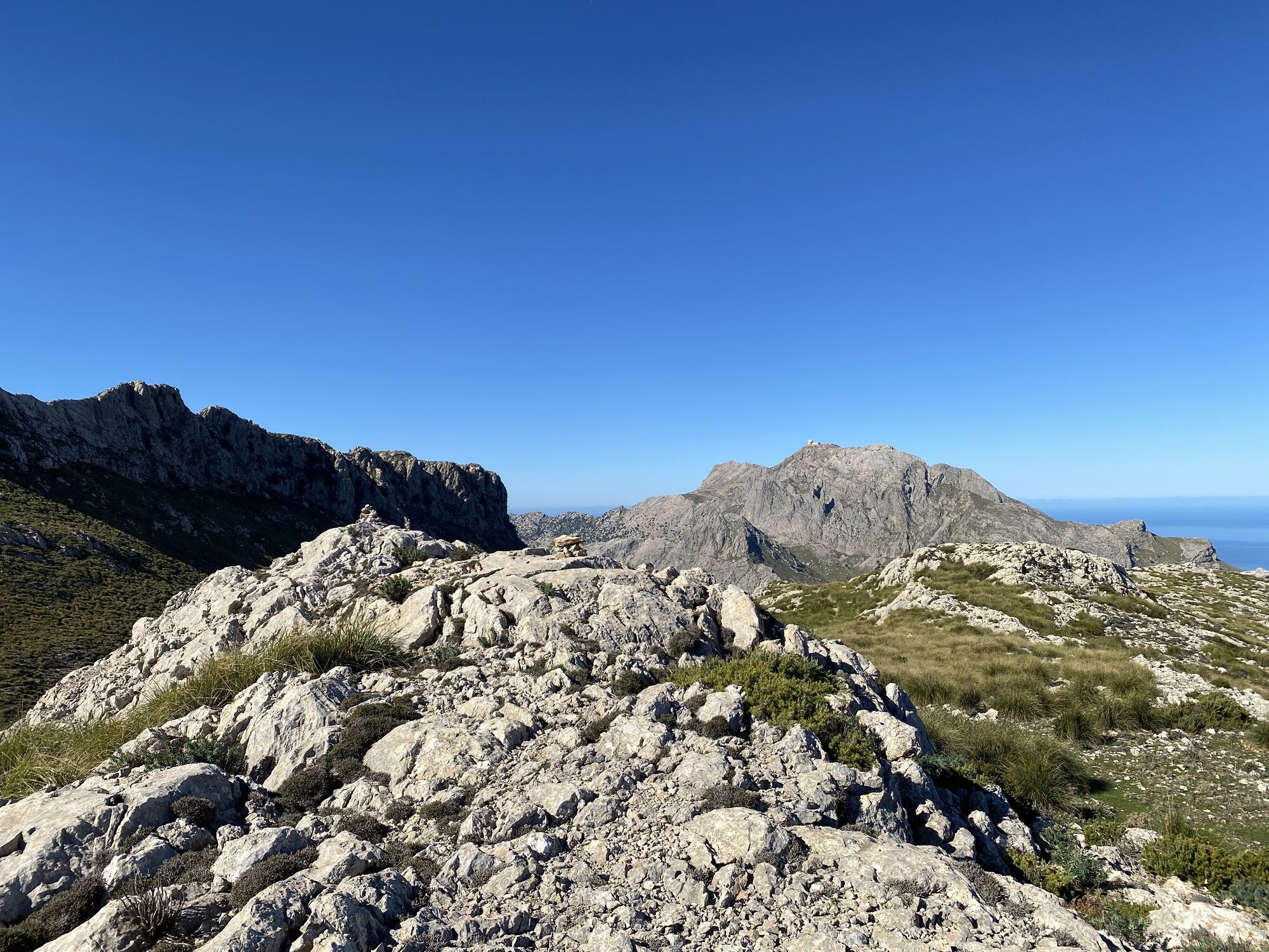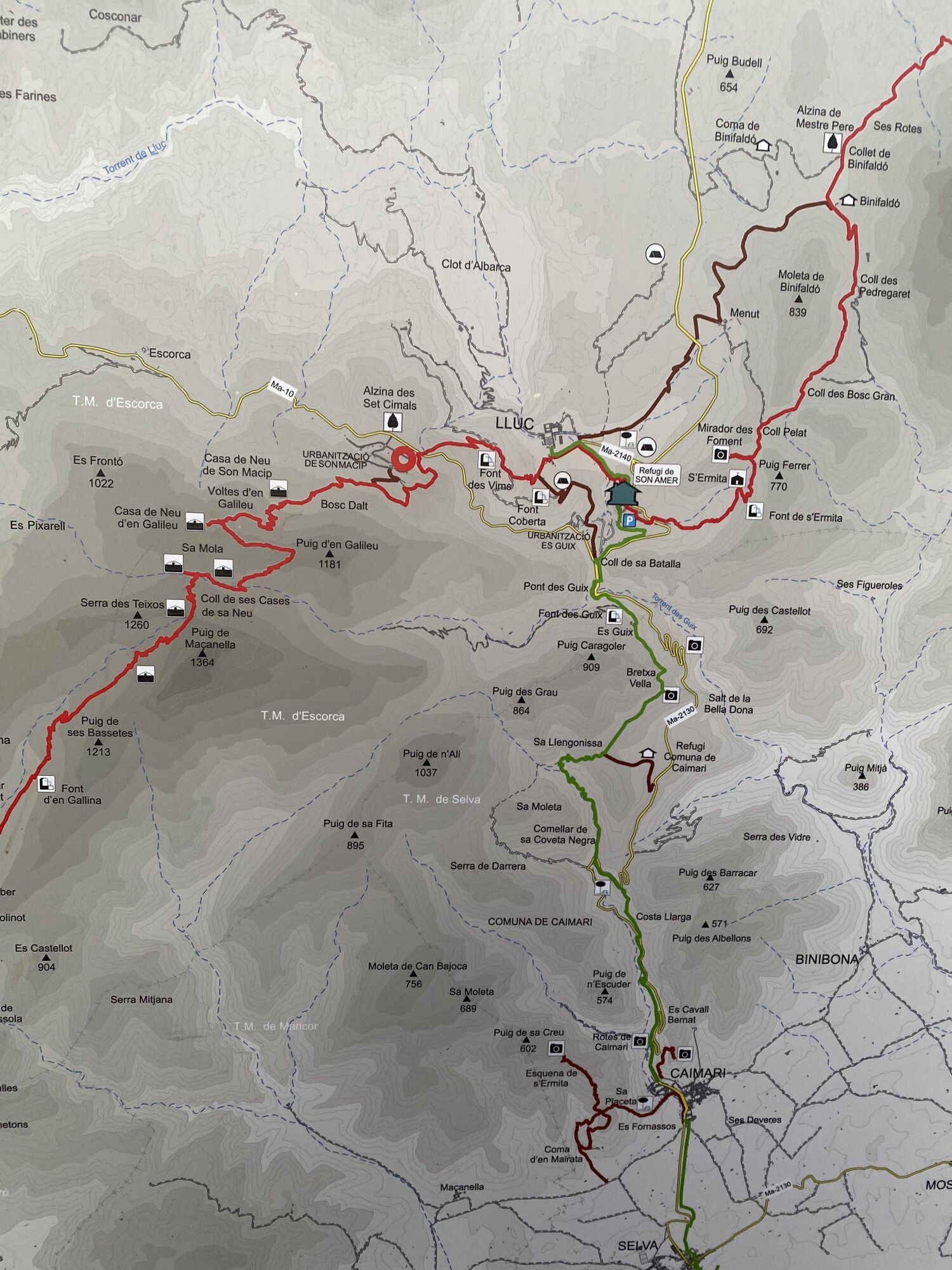 Vom Parkplatz beim Kloster Lluc, geht es Bergauf durch den Wald bis man zu einer Autostrasse kommt, diese überschreiten und weiter durch den Wald bis man am Bergfuss ankommt! Danach geht es in steilen Kehren weiter hinauf zu einem Bergrücken, von wo man bereits den Gipfel zu sehen bekommt. Im letzten oberen Teil muss man ab und zu die Hände zur Hilfe nehmen. Wer aber Schwindelfrei und Trittfest ist löst diese Stelle ohne schwie rigkeiten. Ich bin diese Route nachher über Sa Mola zurück nach Lluc gewandert, kann aber auch auf selben Weg wieder zurückgegangen werden. Unten angekommen lohnt sich ein kurzer Abstecher zum Kloster!