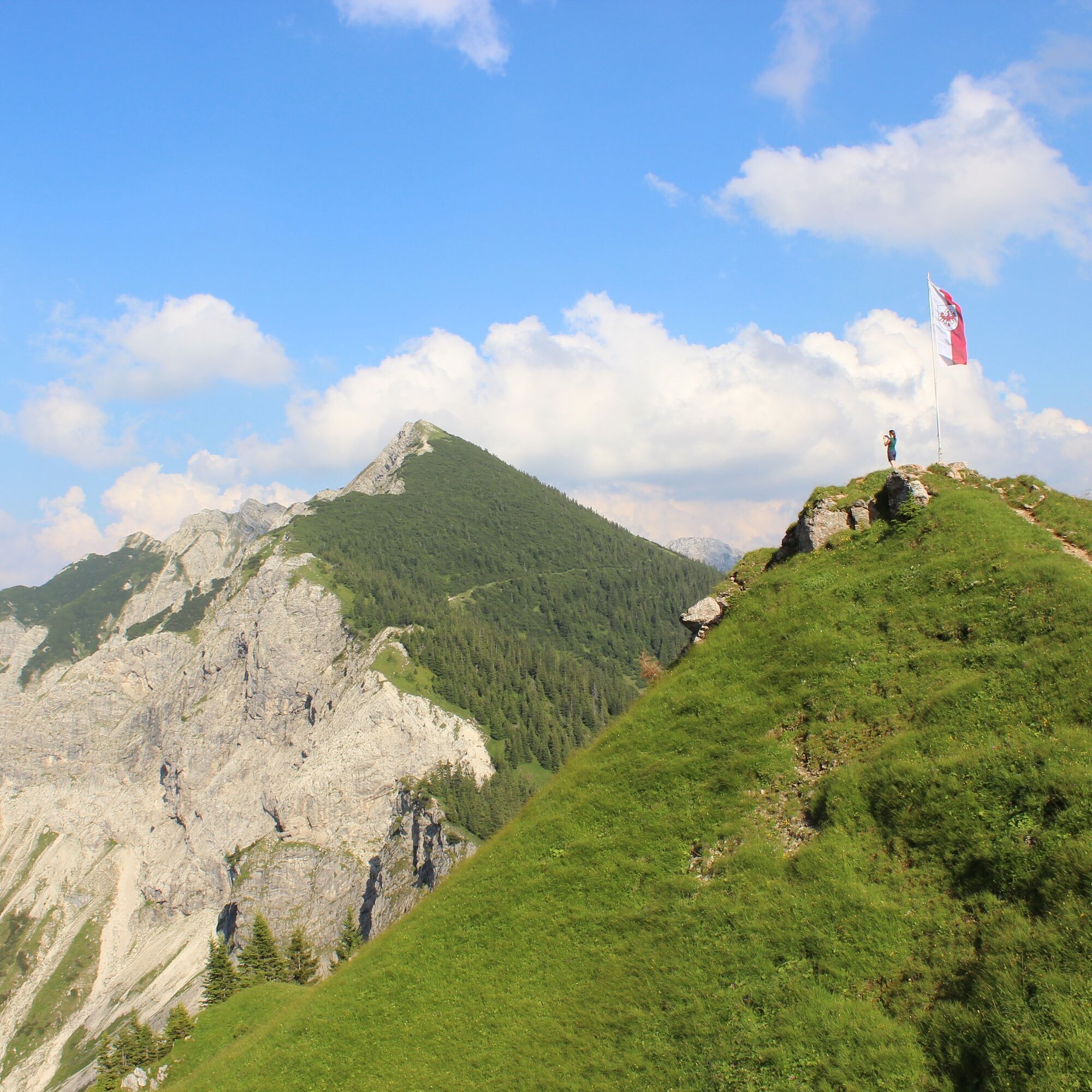 Once you reach the top, the Aggenstein summit awaits you, from where you can enjoy a magnificent view of the surrounding Alps.