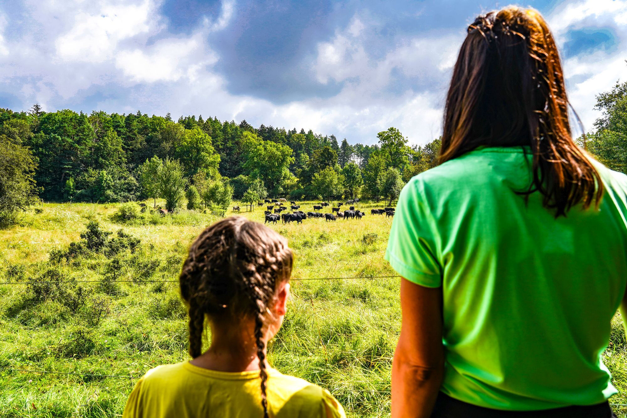 Im ansonsten nicht nutzbaren Bruchgelände der Grube Leonie, das zu einem wertvollen Naturschutzgebiet geworden ist, grast eine Herde Heckrinder. Diese sind eine Rückzüchtung von Auerochsen, dem Wappentier...