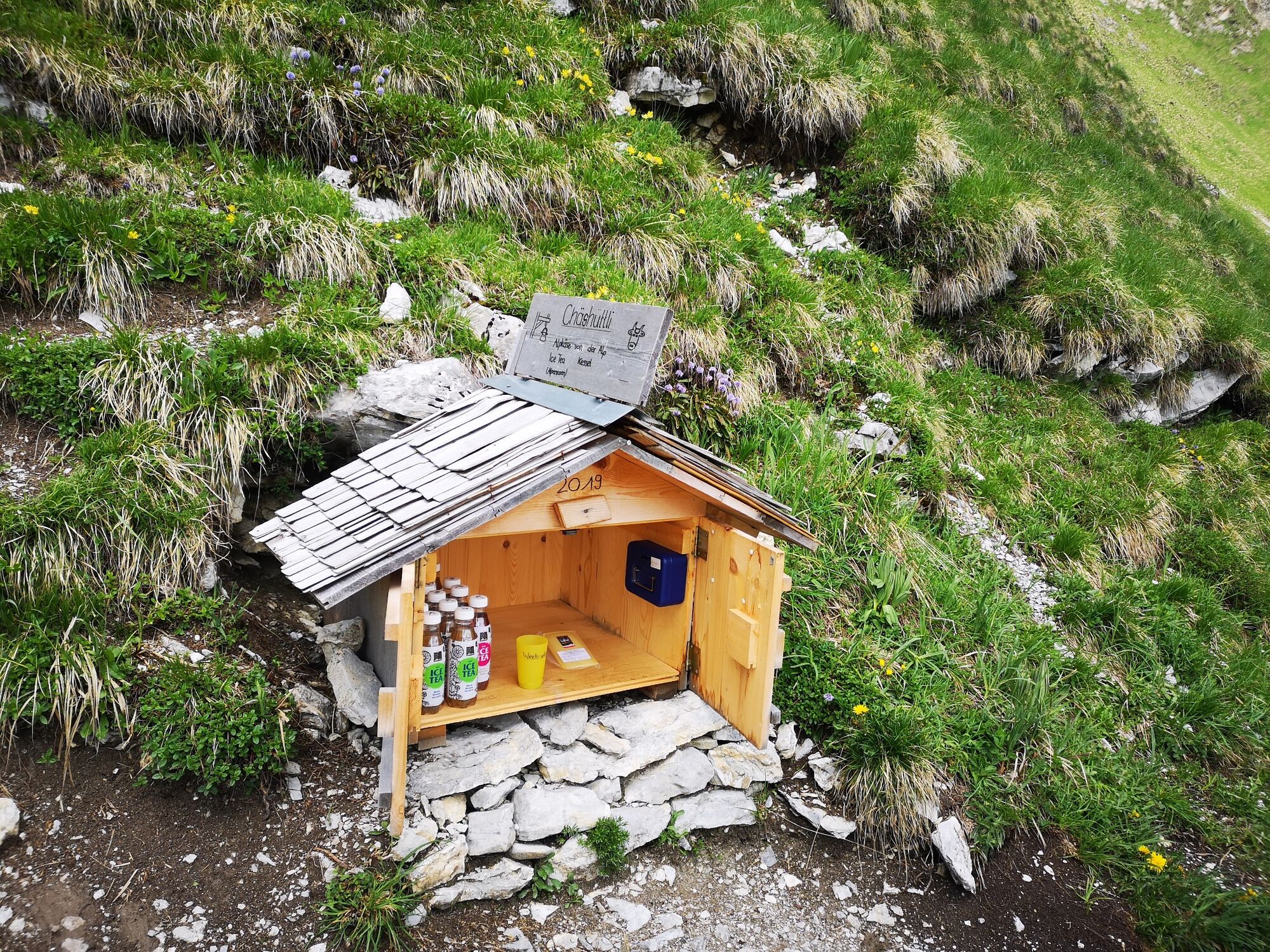 Nun beginnt der eigentliche Höhenweg unter der gigantischen Gantrischkette. Vom Leiterepass kann der bevorstehende Weg gesehen werden. Entlang des Südhangs von Chummfadeflue, Stubeflue und Homad führt der Weg mit wenig zu absolvierenden Höhenmetern. Chuelouenen und Stierehütte passierend, erreicht man die Oberi Walalp. Auf der Bio-Demeter-Alp mit Milchkühen, Rinder, Alpschweinen und Hühnern kann man ein feines Stück Berner Alpkäse AOP kaufen.