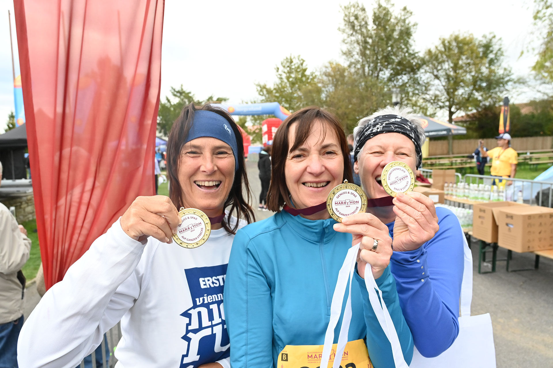 The Blaufränkischland Marathon takes you 42 kilometres from the red wine village of Deutschkreutz through the winegrowing villages of Neckenmarkt, Horitschon, Unterpetersdorf and Girm, a district of Deutschkreutz, before returning to the start/finish area in the MS Deutschkreutz school park. Along the way, you will be surprised by the partly flat, partly hilly landscape, which is very varied with some challenging climbs and fantastic views.