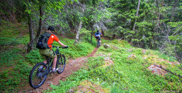 This itinerary connects Aprica to Trivigno and to the start of the Five Crazy Down Padrio (see itinerary n 1 b410). Climb up the paved road passing Pian Gembro and get till the junction to the gravel road Gioviello. Once in Trivigno, at the cross country parking area, take the Padrio itinerary and go through his first part (banchelle zone). Instead of descending to San Rocco turn left and go back to Pian Gembro. From here a gravel road ascend to Pisce', where you'll find three different ways down to Aprica ( n 16, 17, 18).