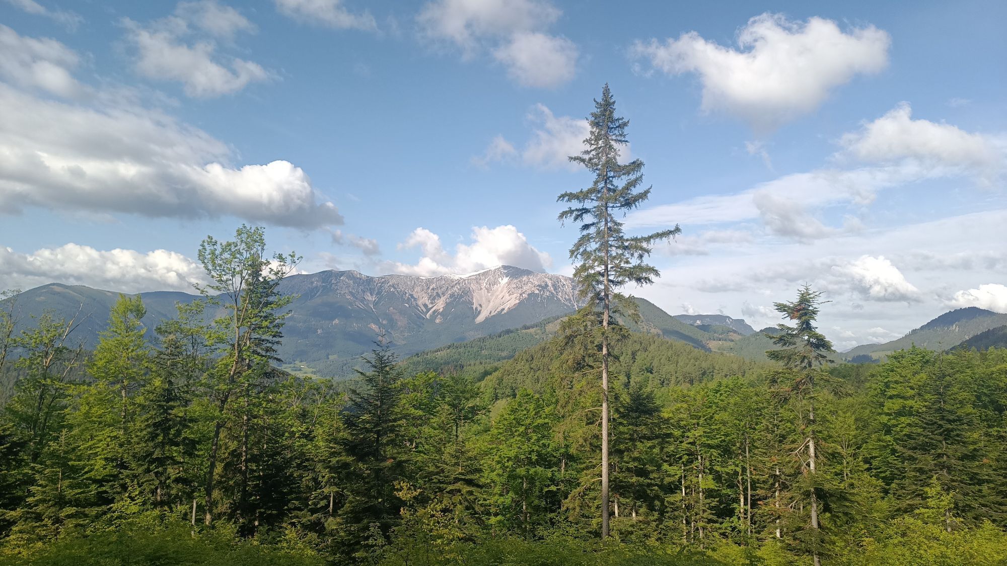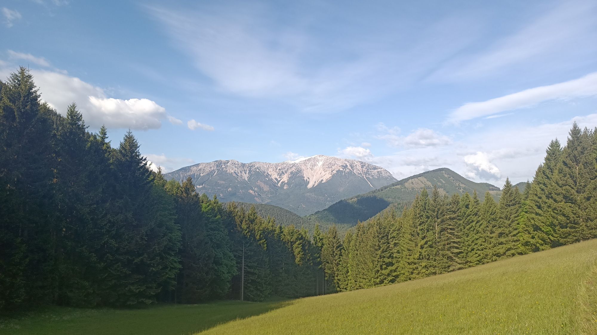 We start from the tourist office heading towards Schneeberghof and the Spar market. There, we turn opposite into Sierningstraße and follow the road for about 1 km. Then we turn right at the red marking and the ascent begins. We then follow the blue marking over the Kaisereben meadow to the Öhlerschutzhaus. From there, we continue along the red marking to the Schoberalm and then return through the Haltbergtal valley to the town center of Puchberg.