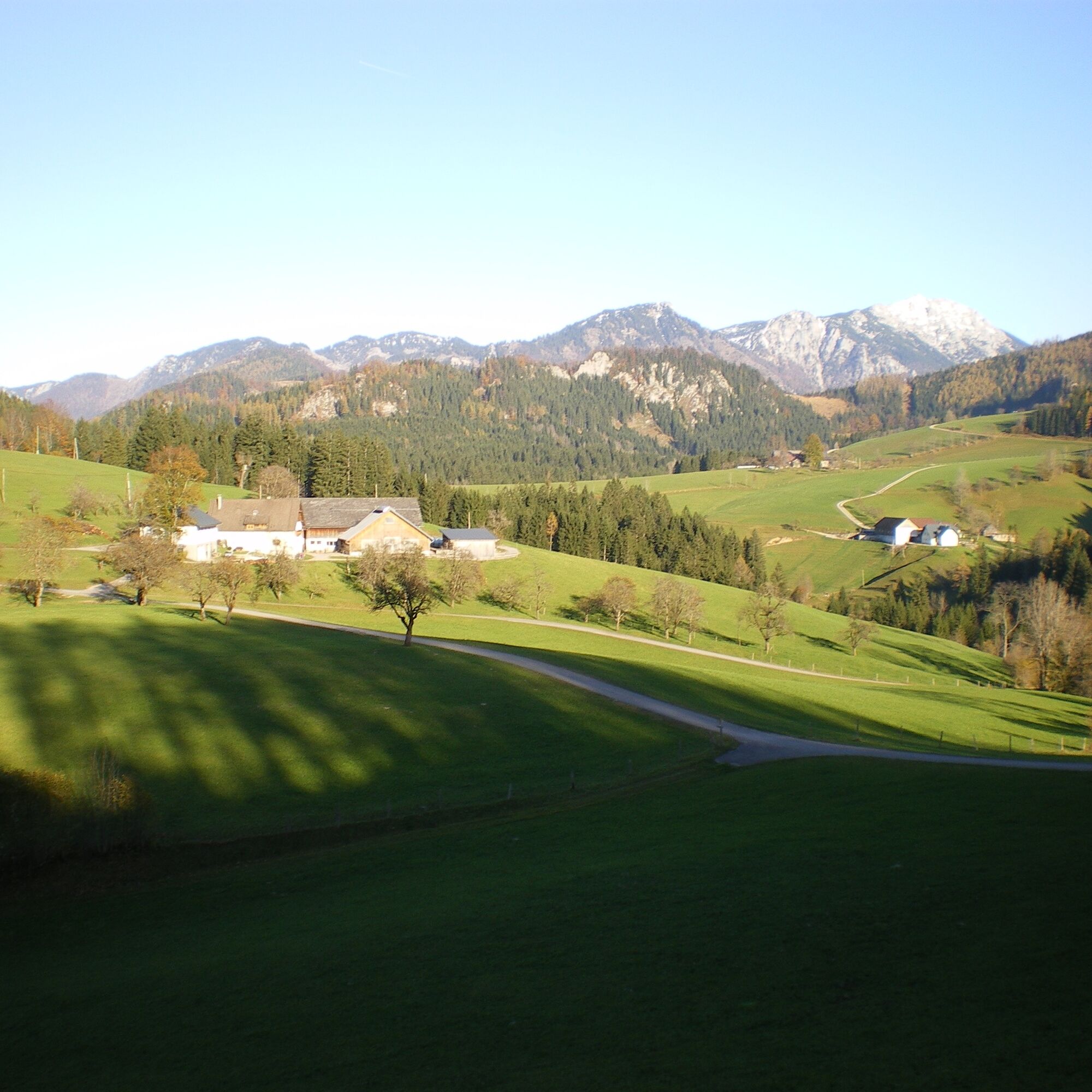 Through the Graben, continue to the asphalt road up to the junction "Ödbauern viewing bench." If time permits, you should go there for about half an hour; the view of Göstling is wonderful.