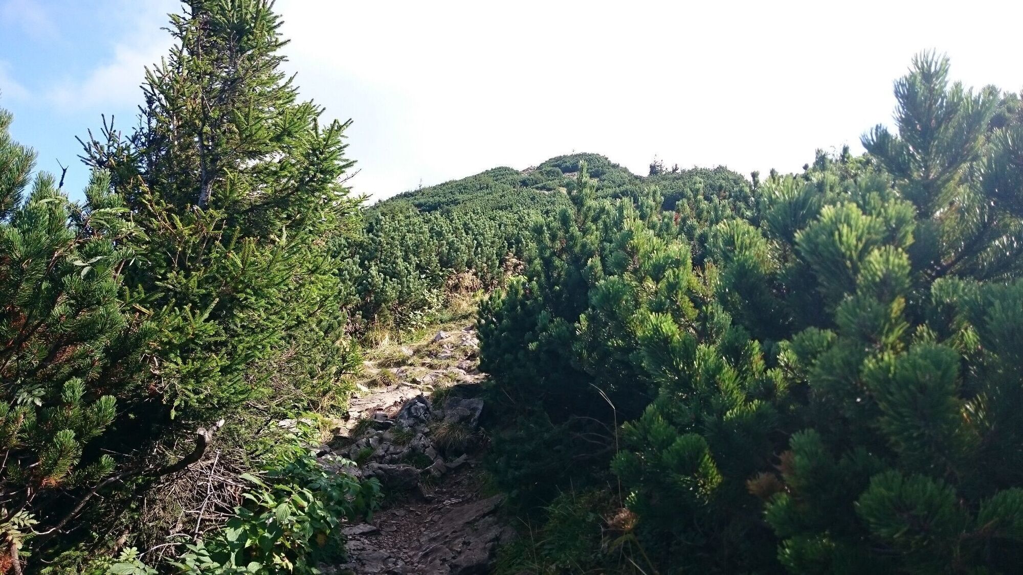 Im Abstieg benützt man vorzugsweise den nach dem "Weißen Mäuerl" rechts abzweigenden, weniger steinigen, aber etwas feuchten "Hangweg" über Rasenhänge und durch Latschengassen zur Wiesmahd.