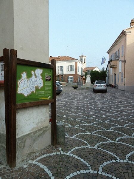 Dopo pochi metri il cammino svolta a sinistra su sterrato, supera una valletta e risale in paese fino a via Rattazzi, dove gira a destra per ritornare alla piazza del municipio.