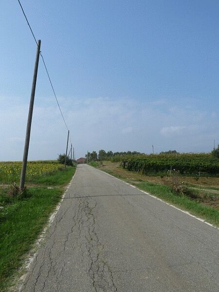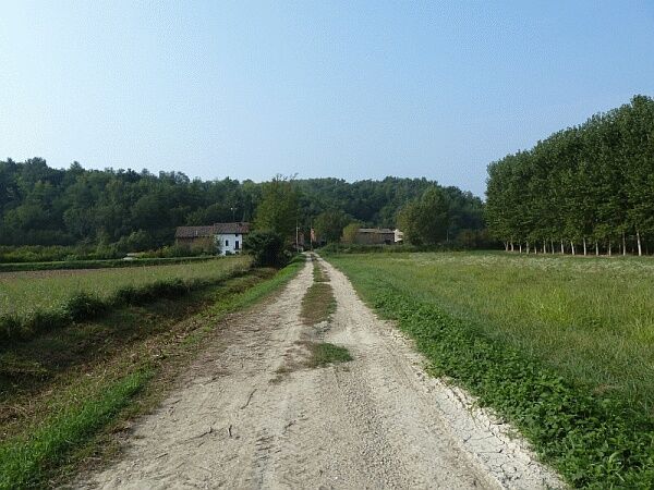 Nei pressi di un piccolo rio il percorso svolta decisamente a sinistra, costeggiando i campi coltivati fino a tornare sull’asfalto nei pressi della cascina Orto, dove tiene la destra; giunto alla cascina Piè il cammino tralascia le tre carrozzabili e prende il piccolo sentiero che si inerpica sulla collina di fianco alla recinzione di una abitazione.