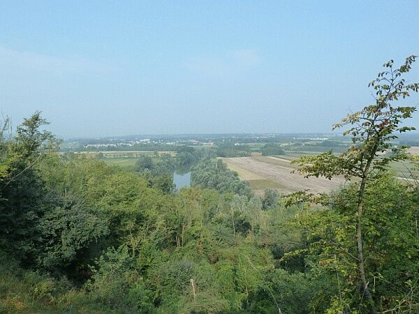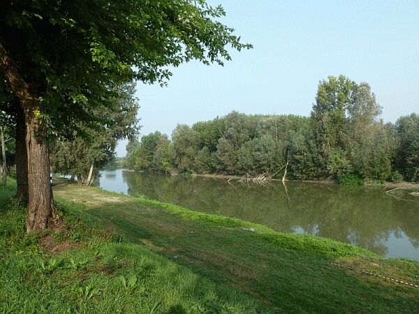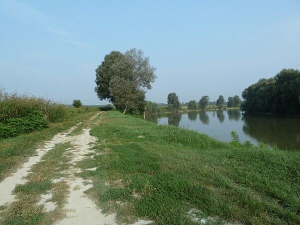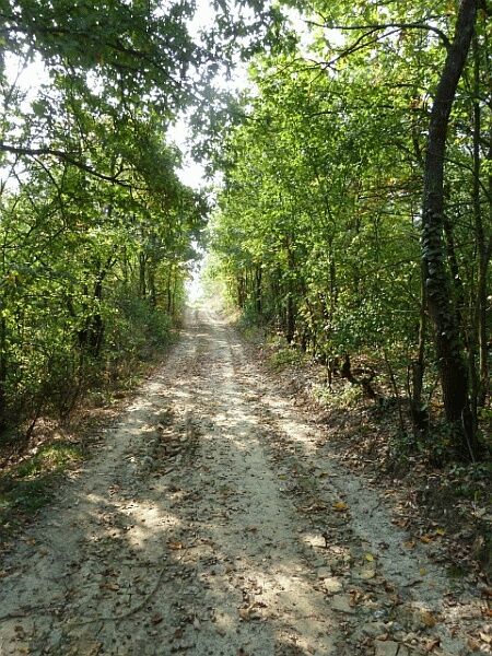 Il sentiero prosegue tra boschetti di querce accompagnate da arbusti di biancospino e di nocciolo e piccoli spazi aperti che offrono scorci panoramici sul Tanaro e sul territorio circostante, transitando nei pressi di una piccola area di sosta, dove piega sulla sinistra, attraversando un’area caratterizzata dai vigneti; lasciata sulla sinistra la deviazione che ritorna verso Masio (Sentiero della Poiana) il cammino prosegue diritto giungendo sulla strada asfaltata, ove gira a destra.