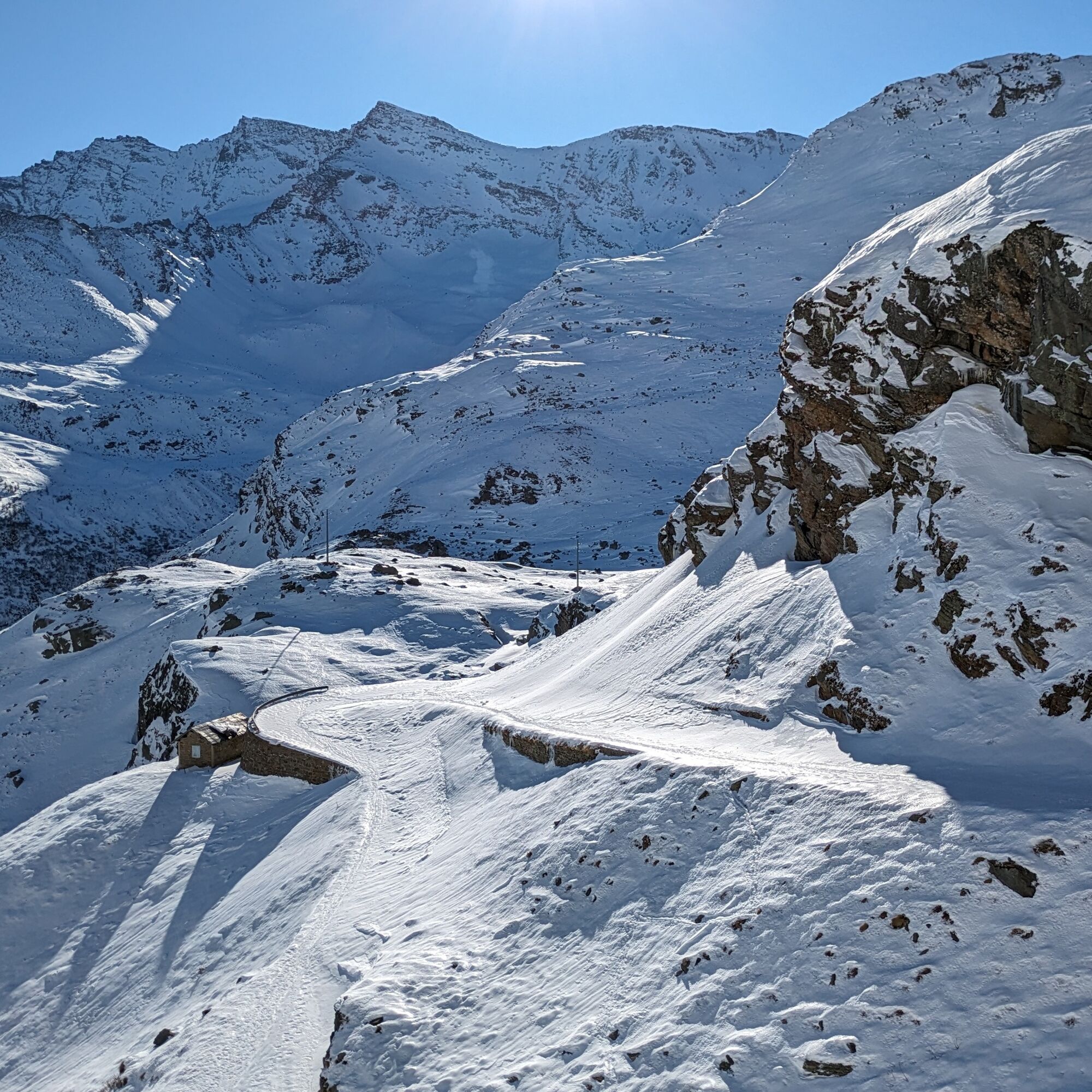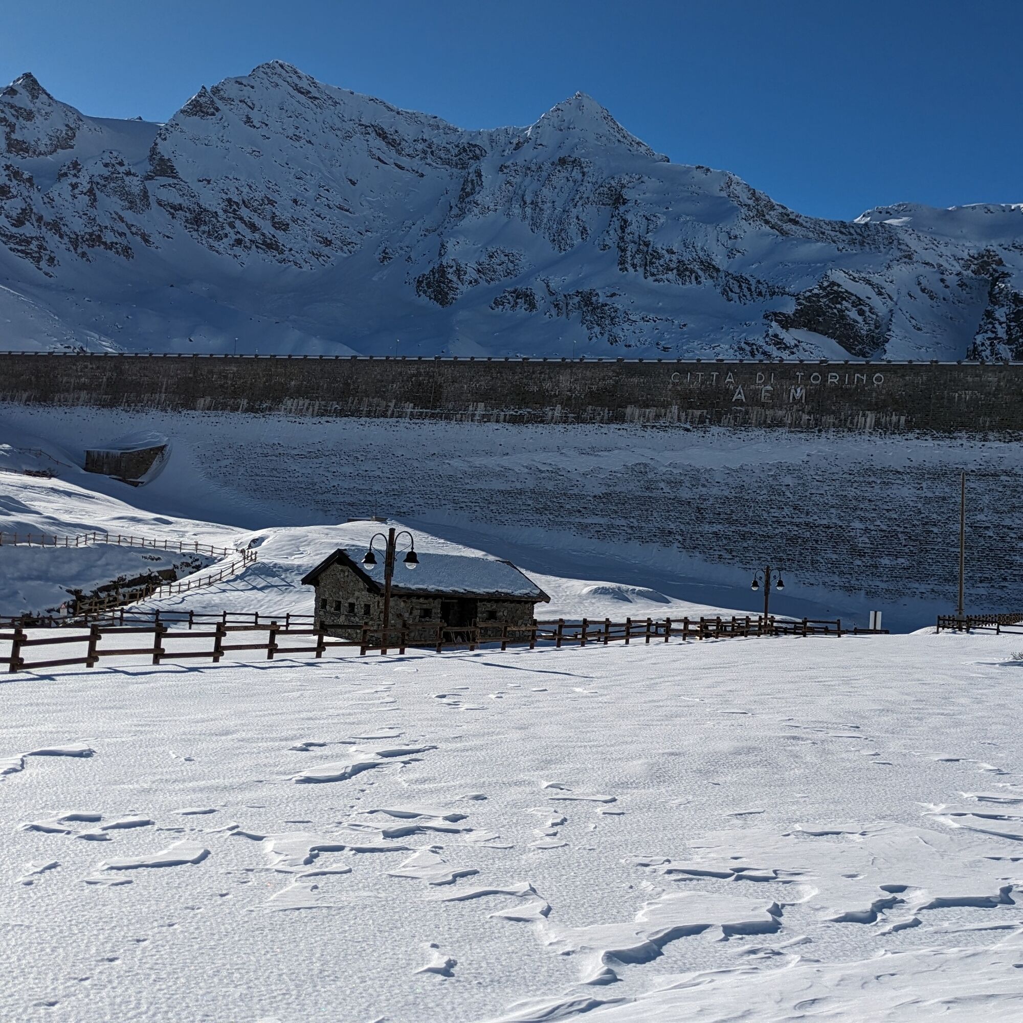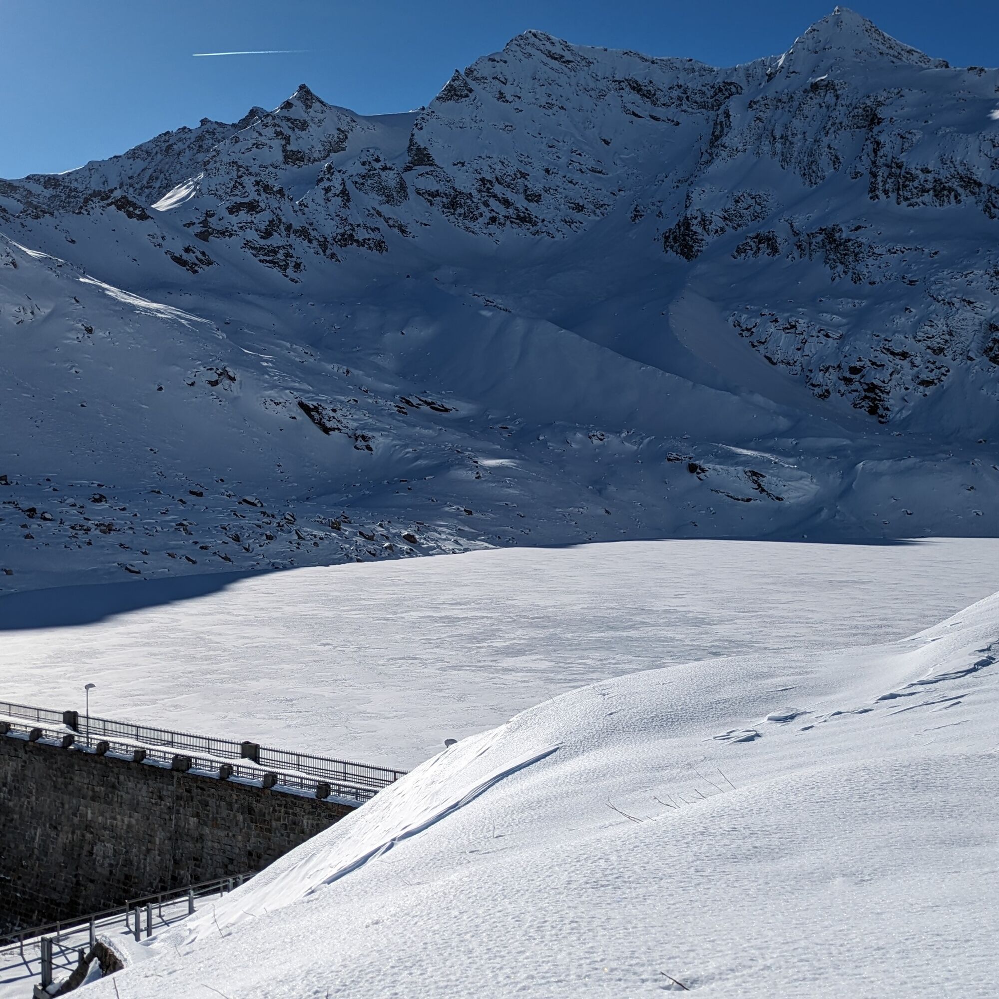 To observe the (frozen) lake beyond the dam, go up some hairpin bends to the junction for the glaciological path (walking on the dam is not allowed).