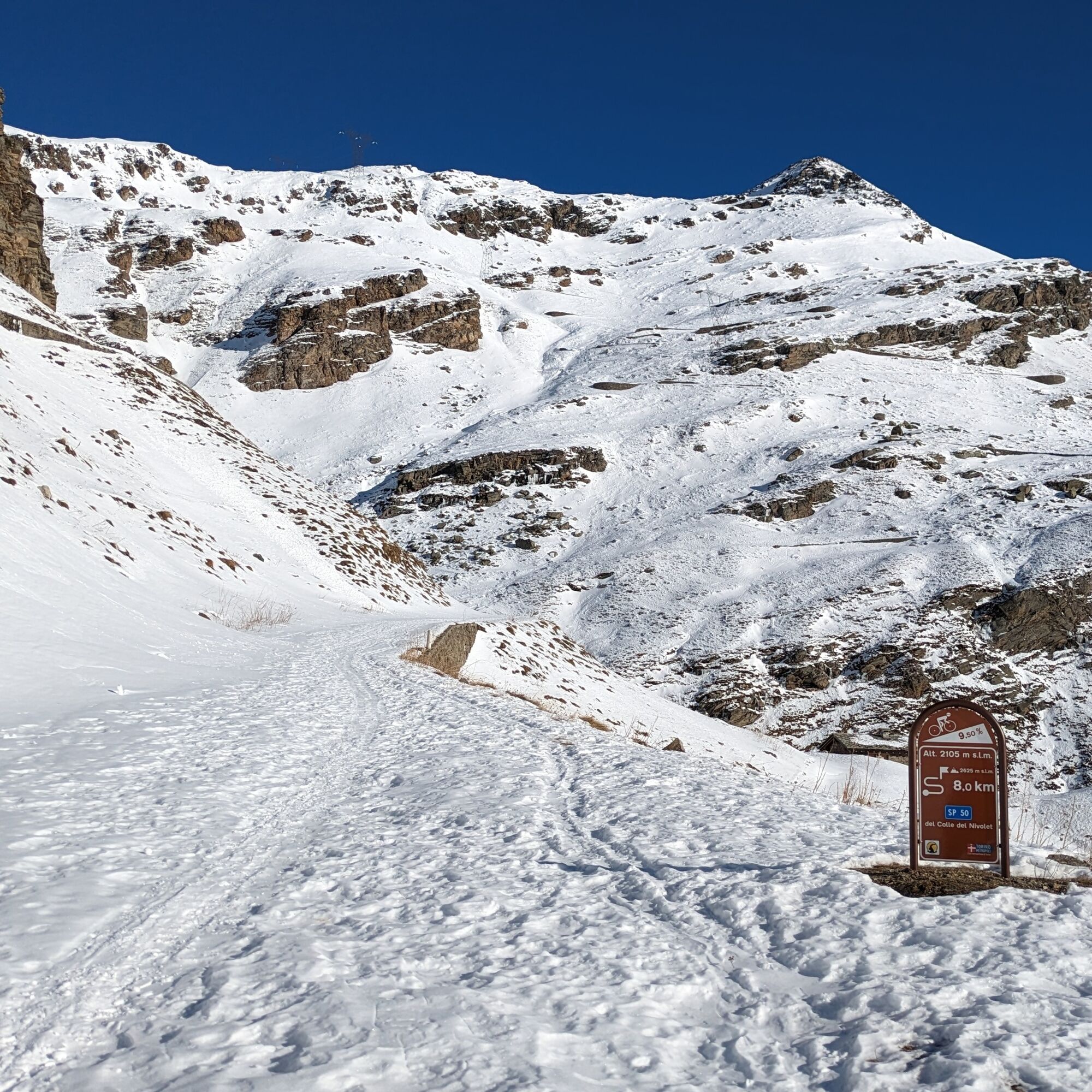 After passing the barrier on the road, follow the road that in summer reaches the dams.