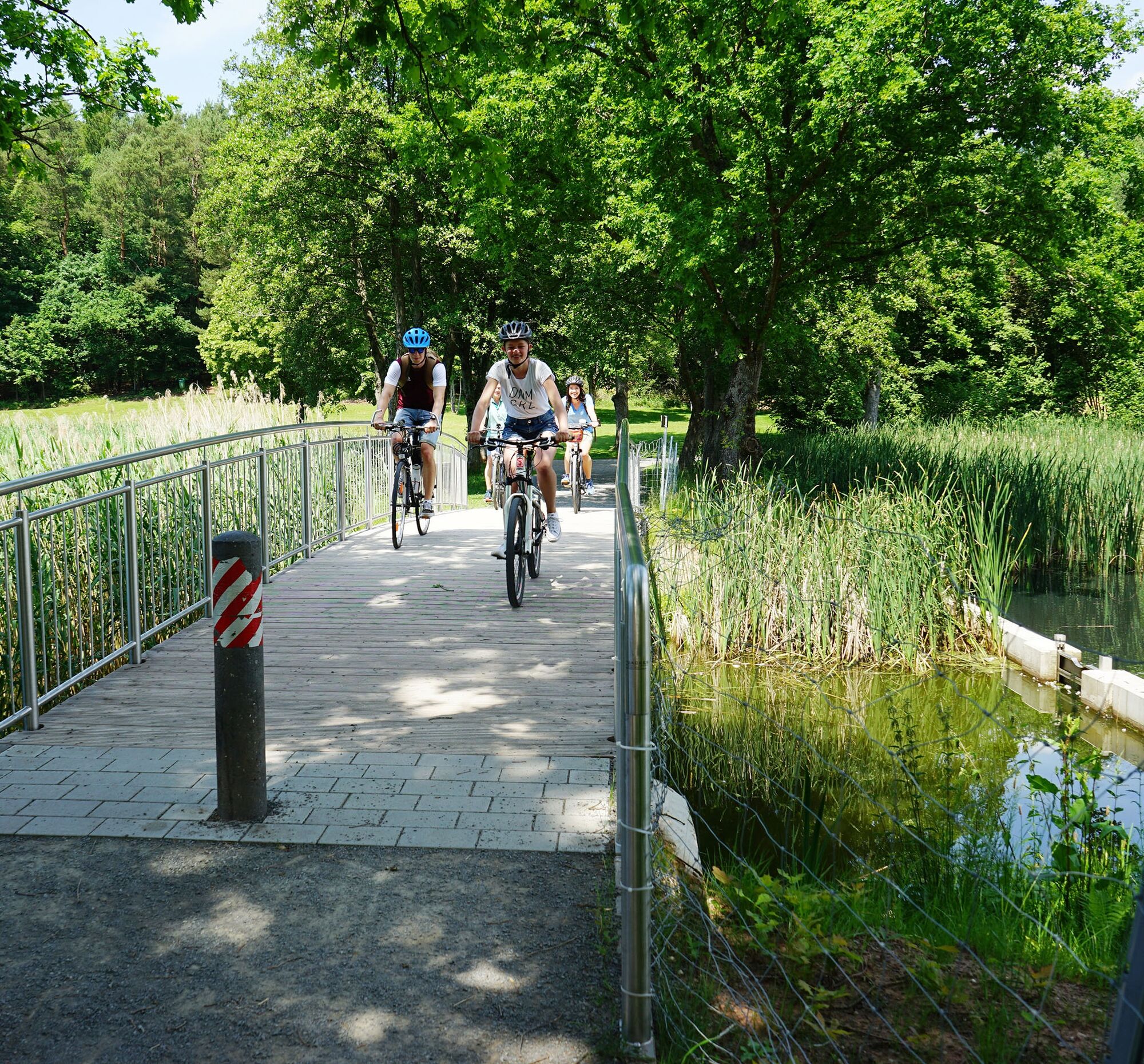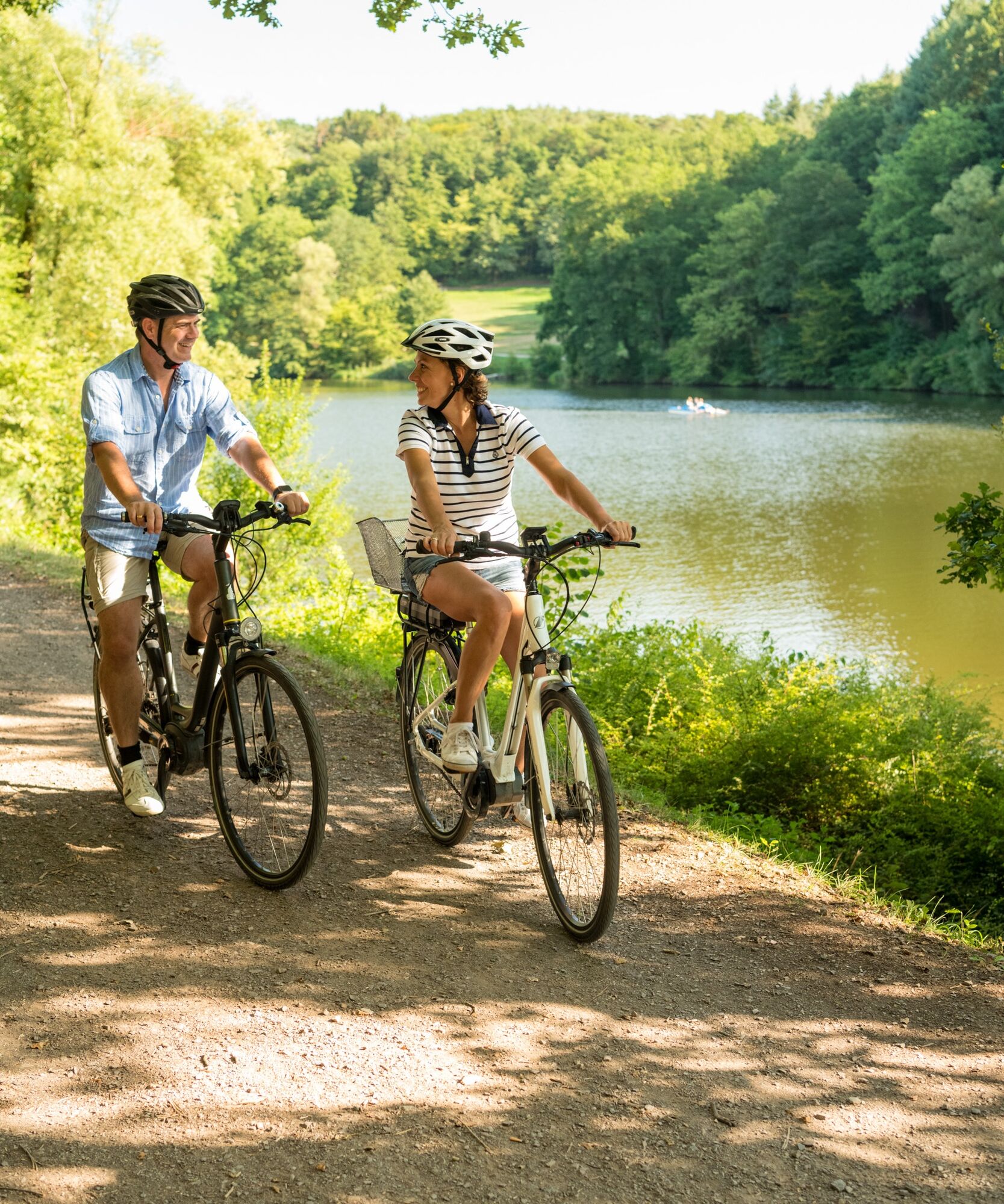 While cycling through quiet nature reserves like the "Schachenwald" or the "Western Palatinate Moor Depression," it’s all about enjoying nature and marveling at biodiversity. The "Heimerbrühl" along the romantic Glan delights mind and soul with sparkling water features. Shady forest passages, open meadows, babbling brooks, villages with diverse history, and of course the lakes invite you to discover or relax.