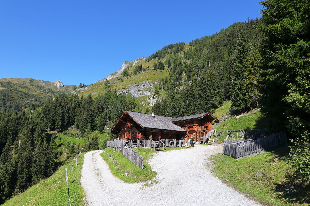 You can reach the start of this route from the center of Großarl via the valley bike path towards St. Johann (approx. 3.7 km). Here you leave the bike path and turn left onto Schiedweg, following it to the Himmelsknoten. Continue on the forest road to the Mooslehenalm, 1,449 m. Ascend the same way to the junction, then take the path to the Viehhausalm, 1,640 m. Return again to the junction and follow the path to the Niggeltalalm, 1,507 m.