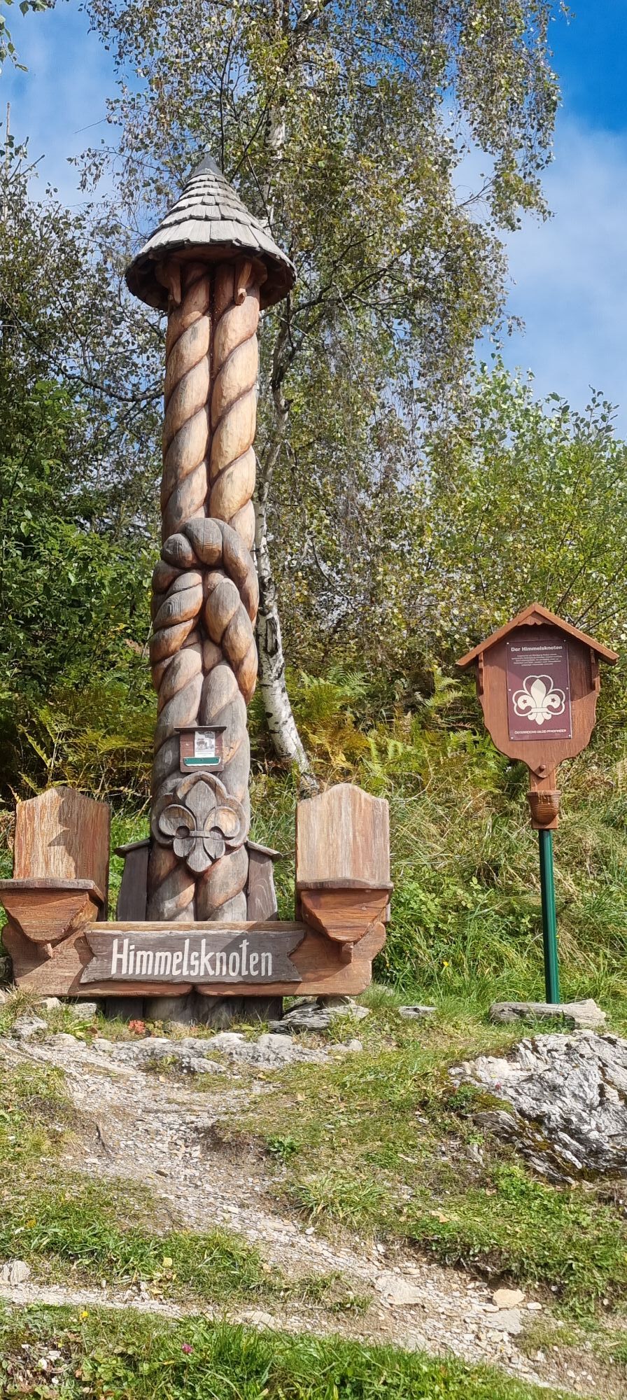 You reach the starting point of this route by cycling from the center of Großarl along the valley bike path towards St. Johann (approx. 3.7 km) and then turning left towards Himmelsknoten. The "Himmelsknoten" is a monument from the old scout guild, which has been holding its forum with us in the Großarl Valley for over 40 years. A forest road leads to the Mooslehenalm. The scent of fresh blueberry dumplings already wafts in the air.