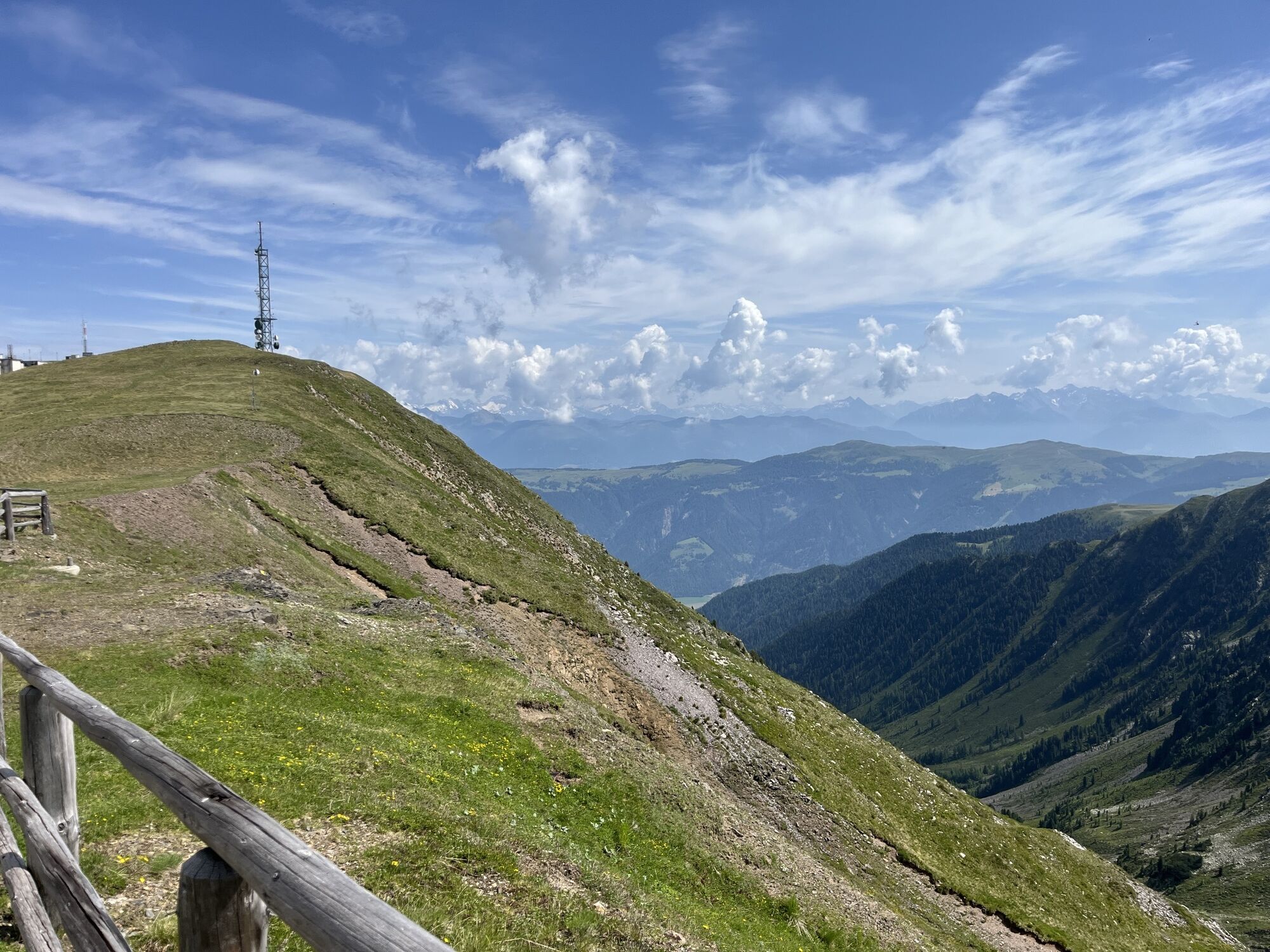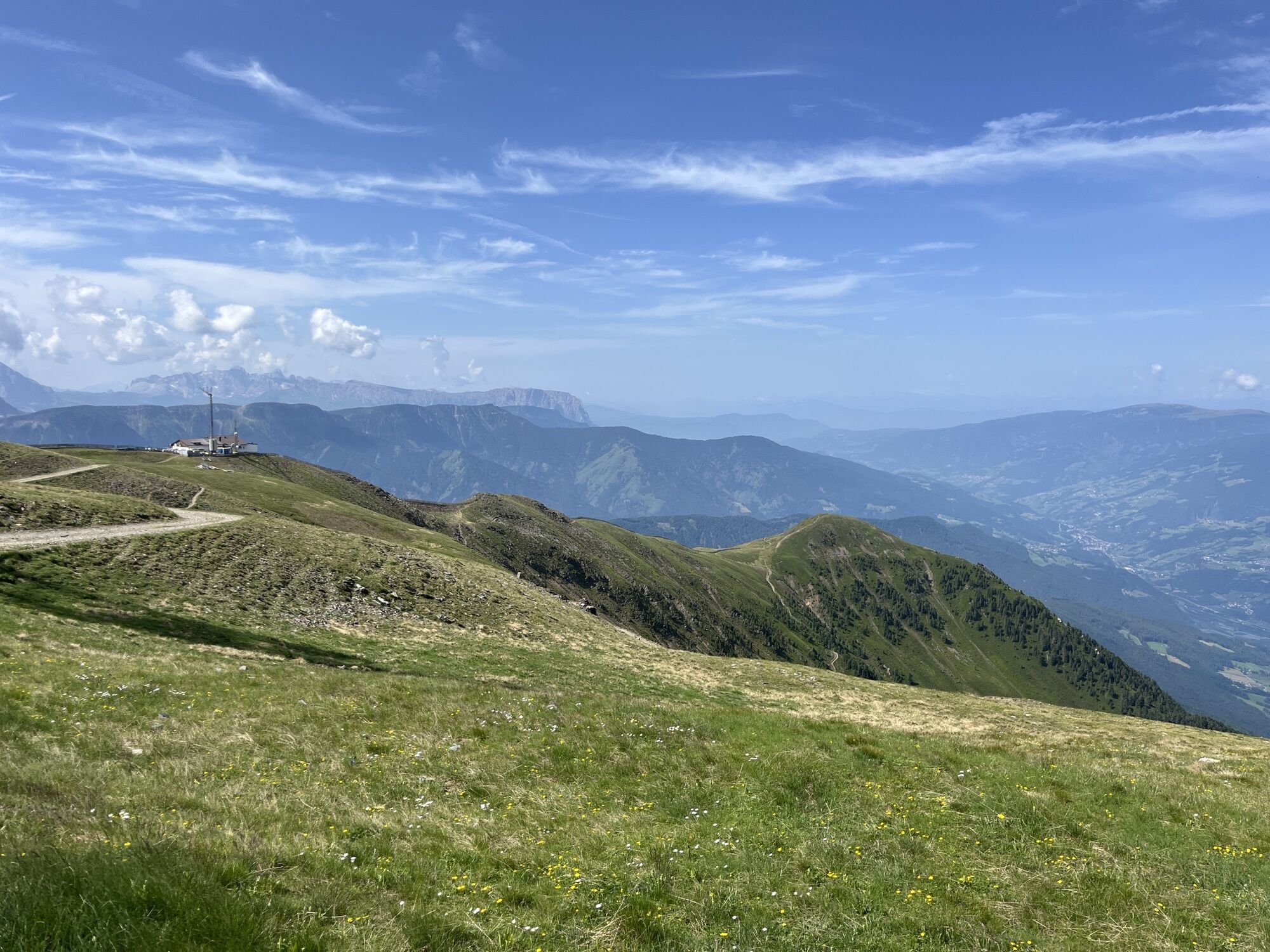The start of this challenging hike is at the mountain station of the Plose gondola lift in Kreuztal/Valcroce (2,050 m). The gondola lift brings hikers from St. Andrä/S. Andrea to the Plose above Brixen and is open from mid-May to the end of October. Follow trail no. 7/30 from the mountain station of the gondola lift to the top of the forest line and turn right onto trail no. 7. Continue along a clearly defined trail and across the slopes to the Schönjöchl ridge (2,250 m) before arriving at the Plosehütte mountain shelter (2,446 m). From there, follow trail no. 6 north past some buildings, to the first summit of the tour. The Telegraph (2,486 m) has a broad, flat summit and panoramic views.