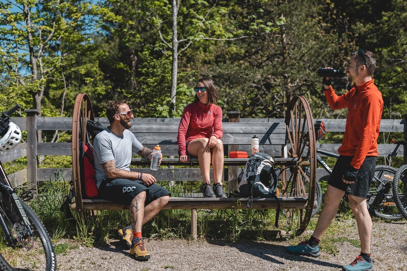 Fahrradhelm, bequeme Radbekleidung, Wechselkleidung, Windschutz, Radhandschuhe, ev. Rucksack mit Trinkflasche und Verpflegung, Erste Hilfe Ausrüstung, ev. Service-/Reparaturkit, Radkarte, Tourenbeschreibung und Informationsmaterial (GPX-Track), Ausweis, Versicherungskarte, Bargeld