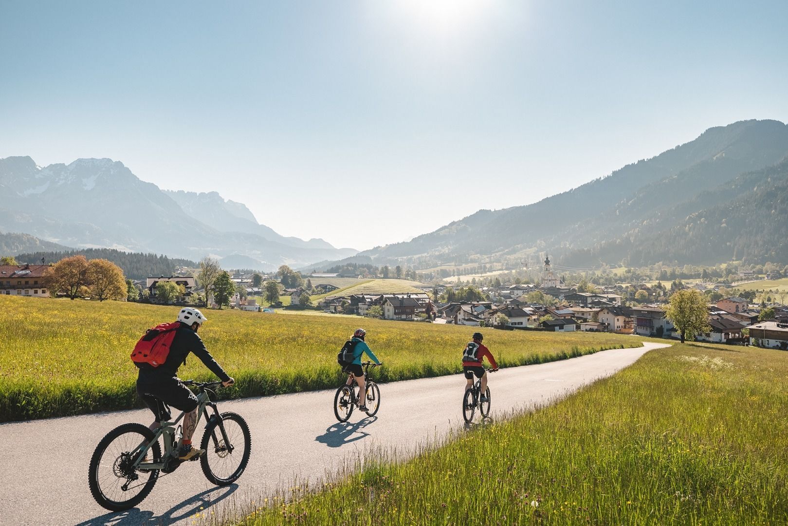 Weiter geht’s am Römerweg immer aussichtsreich oberhalb der Talsohle und vorbei an wunderschön geschmückten Bauernhöfen in den Itterer Ortsteil Mühltal, wo man sich beim traditionellen Gasthof Rösslwirt stärken kann, ehe es vorbei an der nagelneuen Salvista Gondelbahn in Itter auf dem Radweg Nr. 14 Richtung Söll weiter geht.