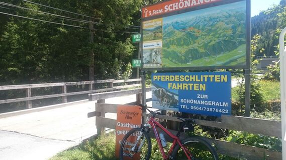 Durch Auffach geht es dann gemütlich bis zur Schönangeralm, der Weg ist angeschrieben.