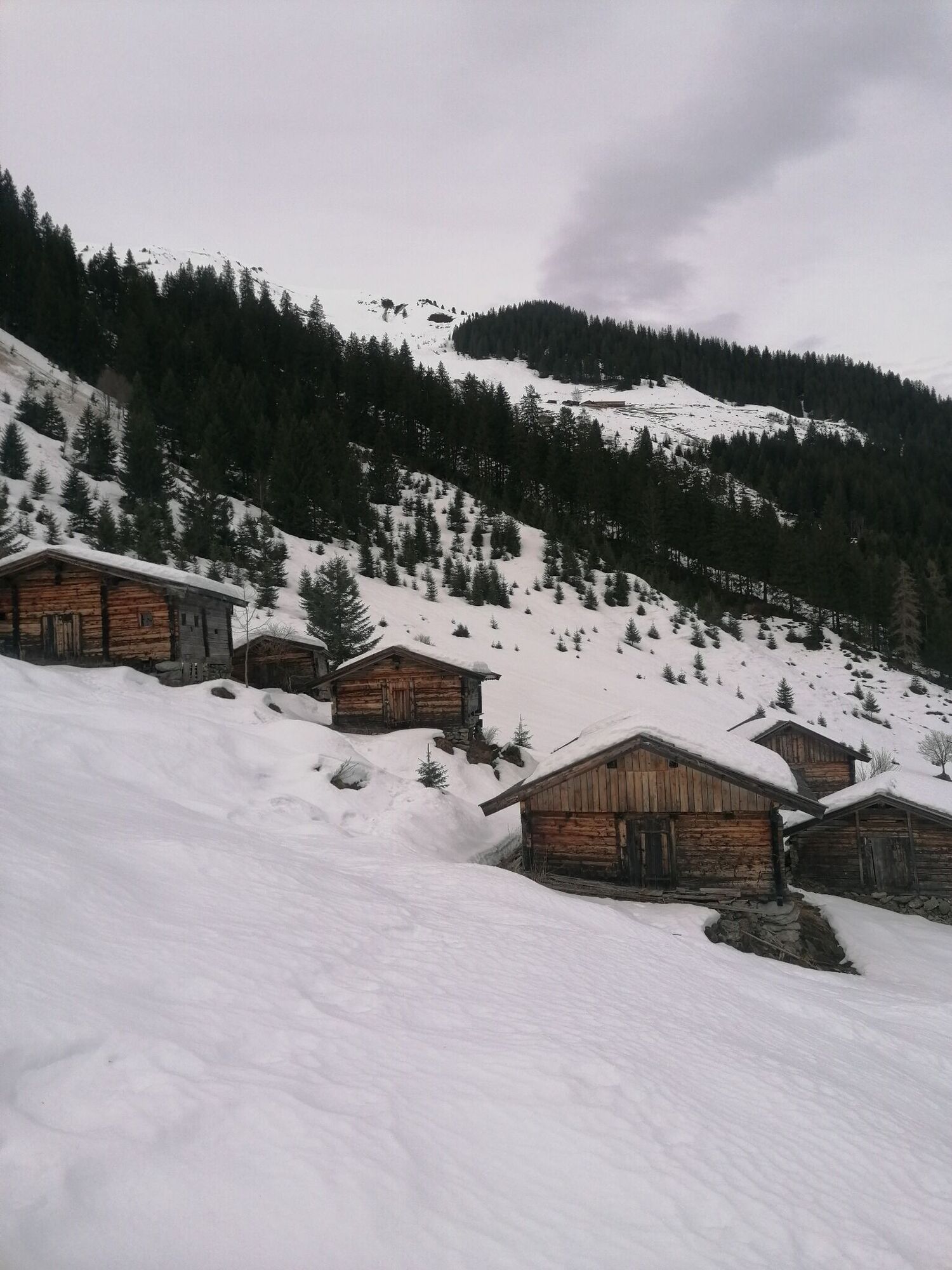 Von der Schönangeralm geht es vorbei an der Zirbenkapelle und flach weiter Richtung Süden. Gleich an der ersten Abzweigung biegt man auf der Forststraße nach links Richtung Gressenstein/Siedeljoch ab. Auf dieser Straße bleibt man, bis man zur urigen und im Winter verschlafenen Gressensteinalm kommt.
