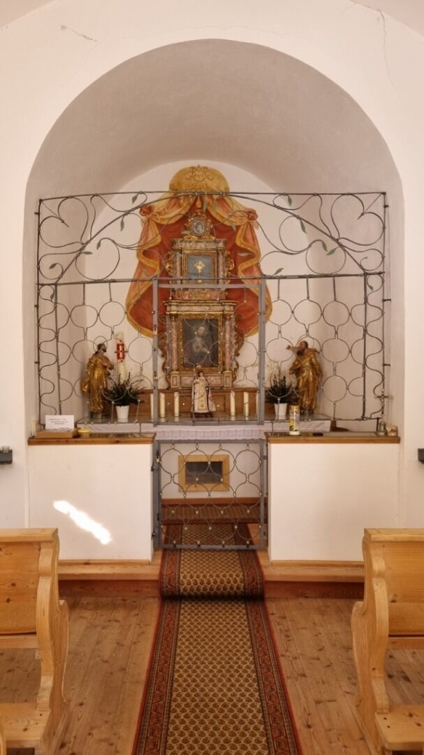 nicht mehr fand. Plötzlich sah er im weit un-ter ihm liegenden Wald einen grünen Fleck. So gelobte der Hirte, bei einer glücklichen Rettung, auf dieser grünen Au eine Kapelle zu bauen. Deshalb der Name “Schäferau”. Nach der Errichtung wurde dieses Kirchlein im Laufe der Jahre viermal umgebaut. Ursprünglich hatte die Kapelle keinen Turm. Erst bei der dritten Veränderung (1953) wurde das Bauwerk um einen Turm erweitert. Der Glockenturm, wie er heute zu sehen ist, entstand 1982.