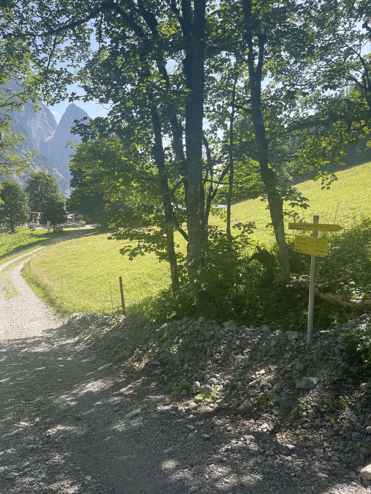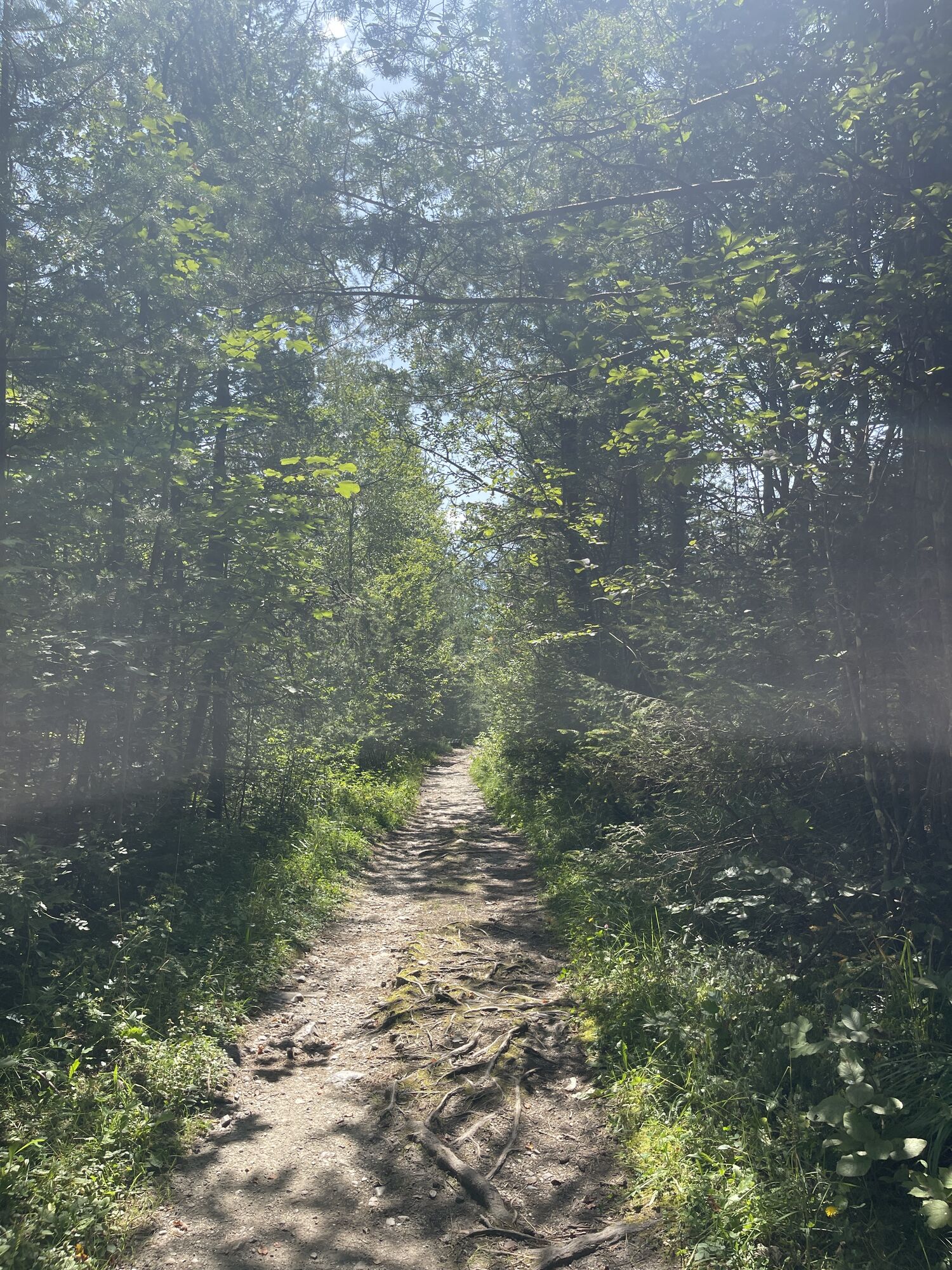 Anfangs angenehme 3km Kieselwanderweg mit kaum einer Neigung, ideal zum eingehen.