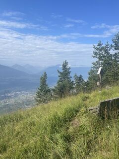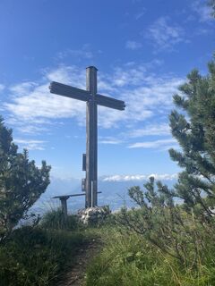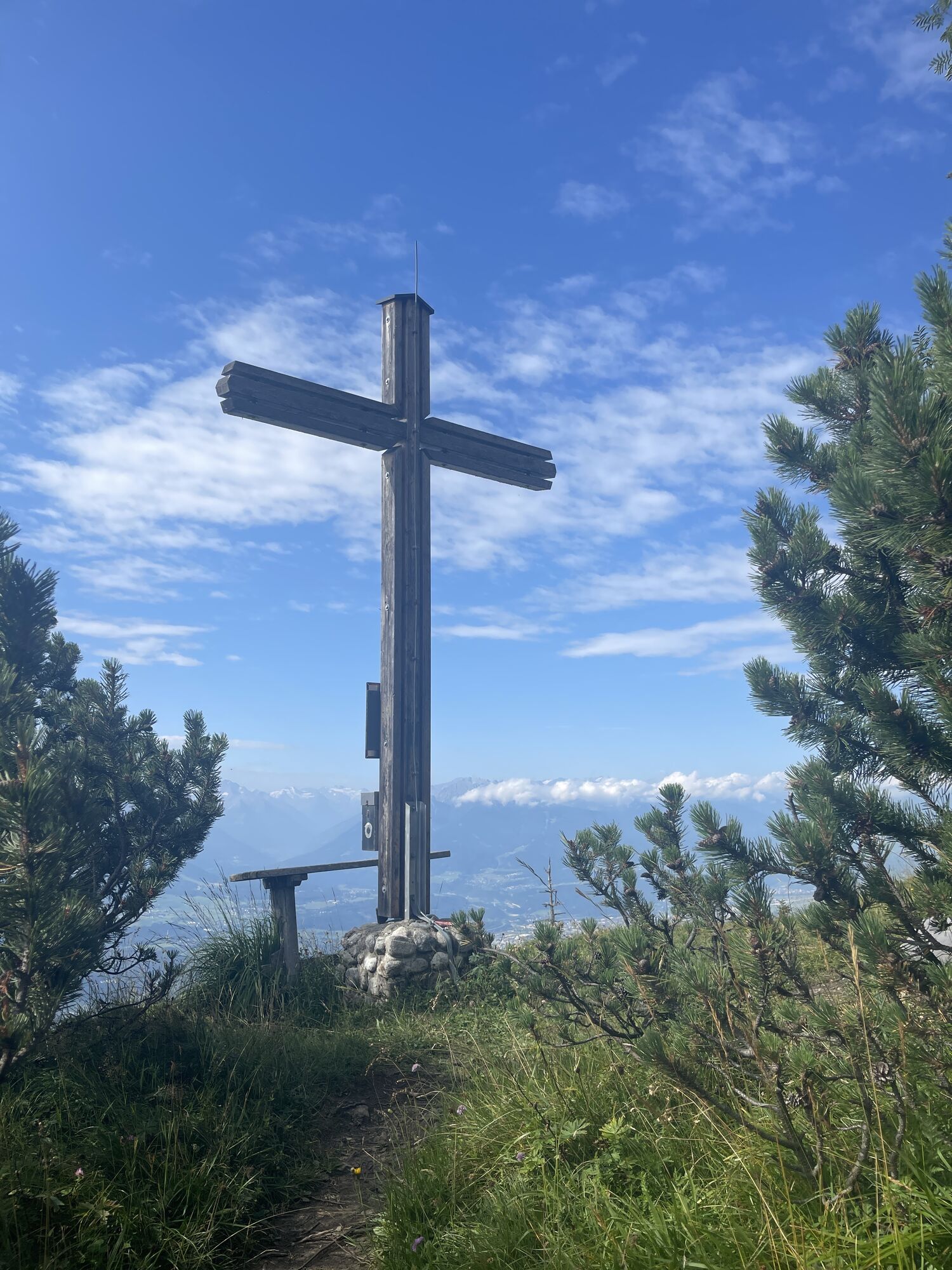 Bis man über den Weissenbach gelangt, diesen sowie die Hauptroute queren und ab da den Schildern zum Hochmahdkopf folgen. Stetiger Anstieg und gleich mal auch außerhalb schattenspendender Bäume. Gräser sind teilweise sehr hoch, für diese sowie auch die teilweise steil ansteigenden Stellen sind Stecken empfehlenswert! Beim Rädermacher ist dann schon das meiste geschafft. Dort befindet sich auch eine Gedenktafel an das Feuer 2014. von dort noch gute 200hm, stets mit vortrefflich Panorama, bis man kurz unterm Hochmahdkopfer Gipelkreuz zu einer Weggabelung kommt. Von da sind’s nur mehr ein paar Meter hoch, Bankerl und Aussicht oben sind vortrefflich. Danach geht’s über die Weggabelung dann links den nordhang hinunter, angenehm im Schatten, aber auch hier sind stecken empfehlenswert da teilweise rutschige Stellen dabei sind. Bis zur Raststation St Magdalena. Und von dort empfiehlt sich dann der letzte Abstieg über den Fluchtsteig, der parallel zur Straße im Wald verläuft.