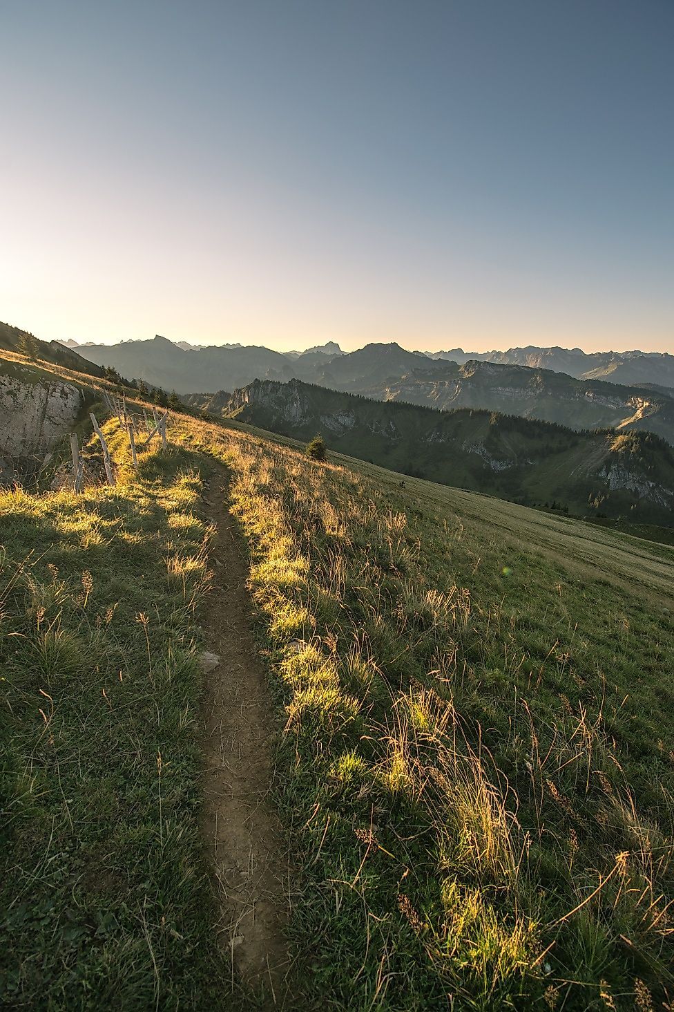 Der Weg verläuft mit herrlichen Rundblicken über die Niedere Höhe zur Stongerhöhealpe. Hier ist nun ein steiler Aufstieg zur Stongerhöhe zu überwinden. Ein alpiner Steig führt über den "Hasenstrick" (Schwindelfreiheit erforderlich) hinüber zum Gipfel der Winterstaude. Der Abstieg erfolgt über die Lingenaueralpe zur Stongenalpe. Vorbei am Stonger Moos gelangt man dann über die Wildmoosalpe ohne viel Höhenunterschied zur Mittelstation Sonderdach und fährt bequem mit der Seilbahn zurück ins Tal.