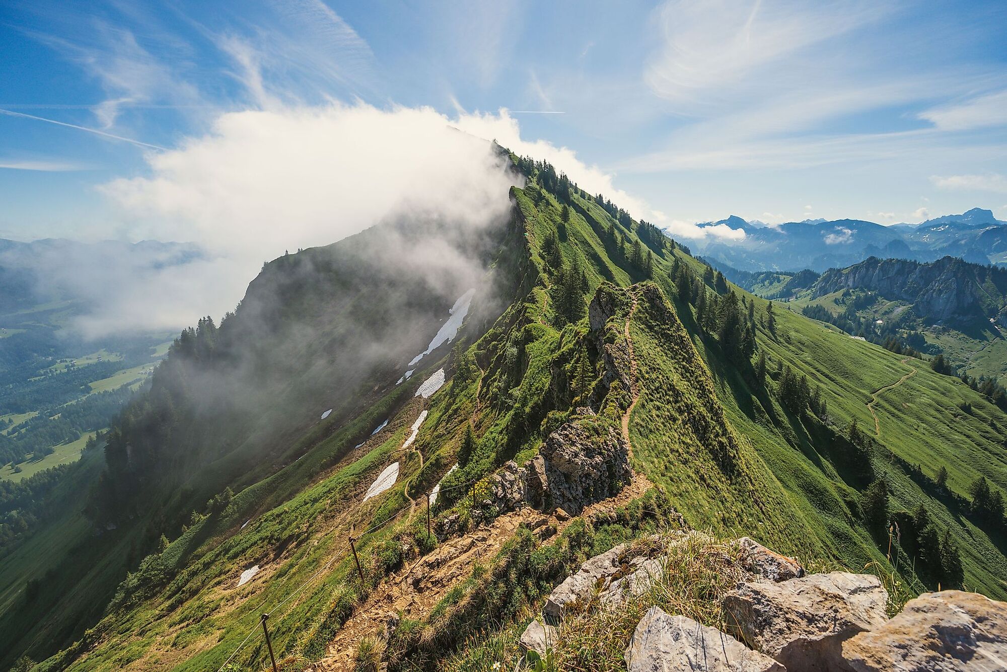 Am Bergkamm „Niedere“ wandert man auf einem Weg mit herrlichen Ausblicken zur Stongerhöhe. Ein alpiner Steig führt dann über den „Hasenstrick“ zum Gipfel der Winterstaude. Entlang der Abstiegsroute liegen einige schön gelegene Alpen mit eigener Sennerei. Von der Mittelstation Sonderdach fährt man bequem mit der Seilbahn zurück ins Tal.