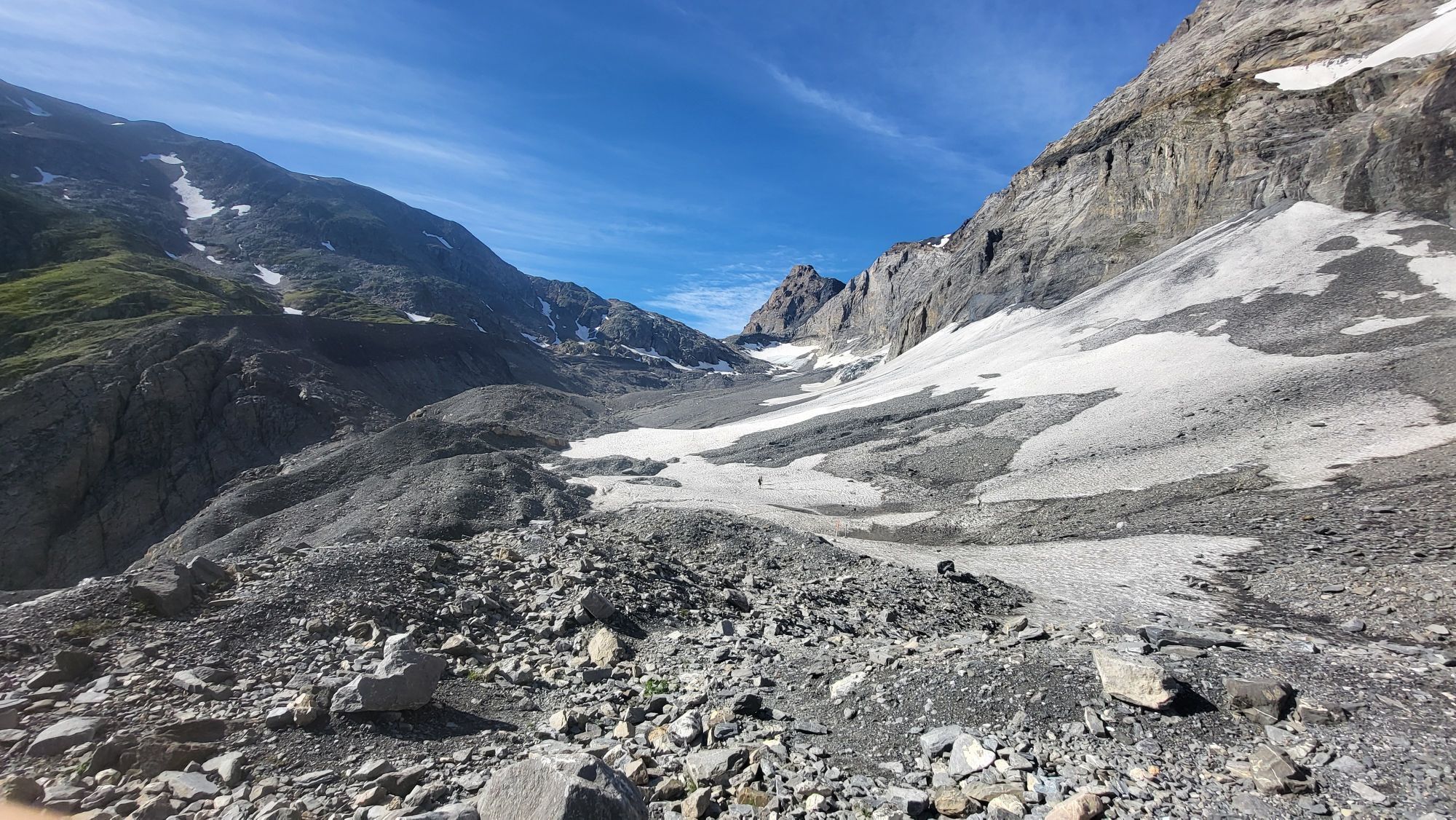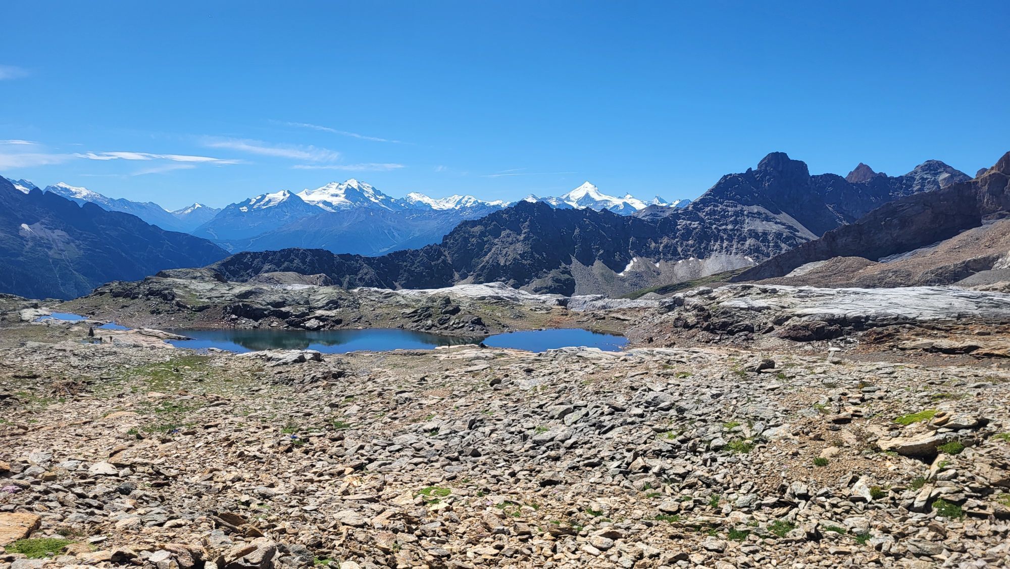 From Lauchernalp, start this beautiful hike with the ascent to the Lötschen Pass. With a summit at 2,690 m above sea level, crossing the Lötschen Pass demands a good deal of endurance. In return, the view of the mountains around the Lötschental and Kandertal is all the more magnificent. Especially the view over to the mighty Bietschhorn and beyond the Rhone Valley to the Mischabel group is breathtaking. At the Lötschen Pass, you reach the Lötschen Pass hut. Here you can recharge your strength for the descent into the Lötschental (overnight stay in the Lötschen Pass hut is also possible). On the descent into the Bernese Oberland hike, you cross the Lötschen glacier, which is covered over long stretches with gravel and stones of all colors. Here and there, the blue ice gleams through. Meltwater gurgles through small channels, and in some places the water has carved deep, winding grooves through which it rushes until it disappears into a hole. However, the glacier is easily passable with hiking boots. The path then leads steeply down into the Gasterntal to Selden, from where the bus takes you back to Kandersteg.