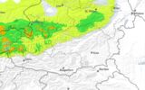 Der Dienstagnachmittag bringt überwiegend bewölktes Wetter, es regnet oder schneit immer wieder. Die Schneefallgrenze liegt in der Obersteiermark zwischen Tallagen und etwa 800 m Höhe, im Süden sinkt sie erst spät am Nachmittag langsam gegen 1000 m Höhe. Die Höchstwerte liegen von Nord nach Süden zwischen 1 und 6 Grad.