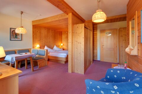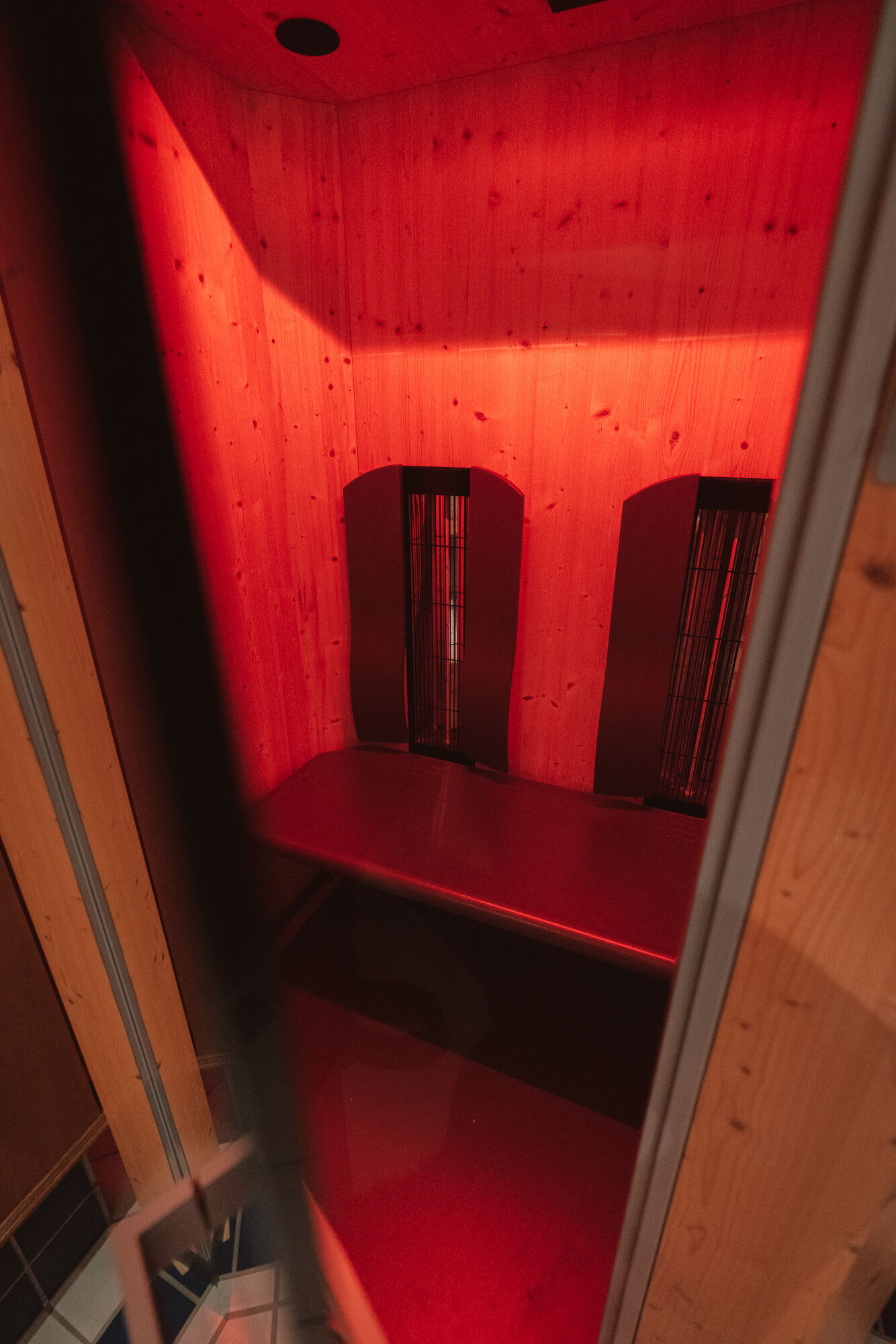 Enjoy our 300m² wellness area from 7:00 to 21:00. There is a whirlpool right next to the heated swimming pool. Experience relaxation in our Swiss stone pine sauna, infrared sauna, infrared chairs, steam cabin, heated loungers and our relaxation room.